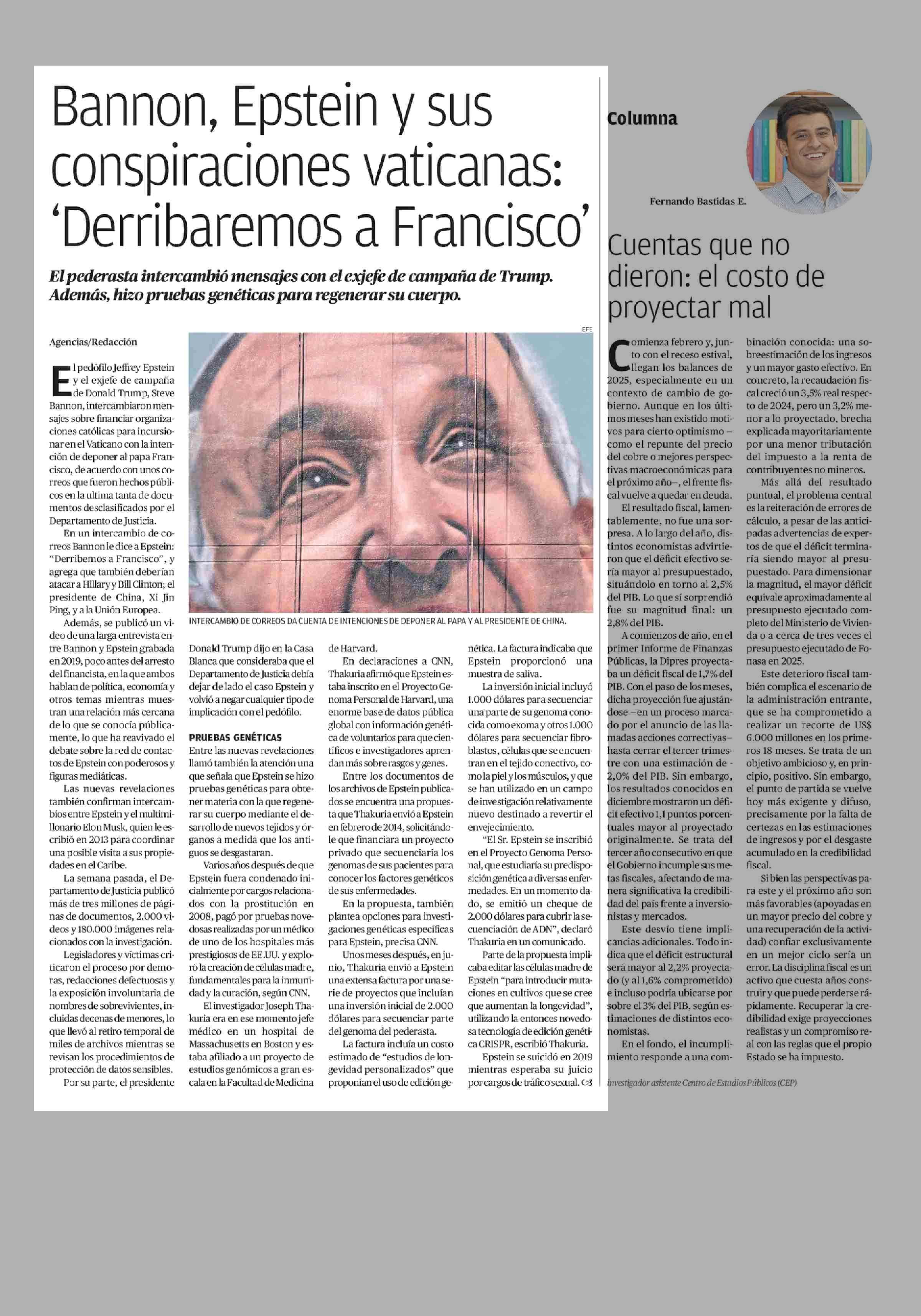 Bannon, Epstein y sus conspiraciones vaticanas: 'Derribaremos a Francisco' 08-02-2026 El Mercurio de Antofagasta |