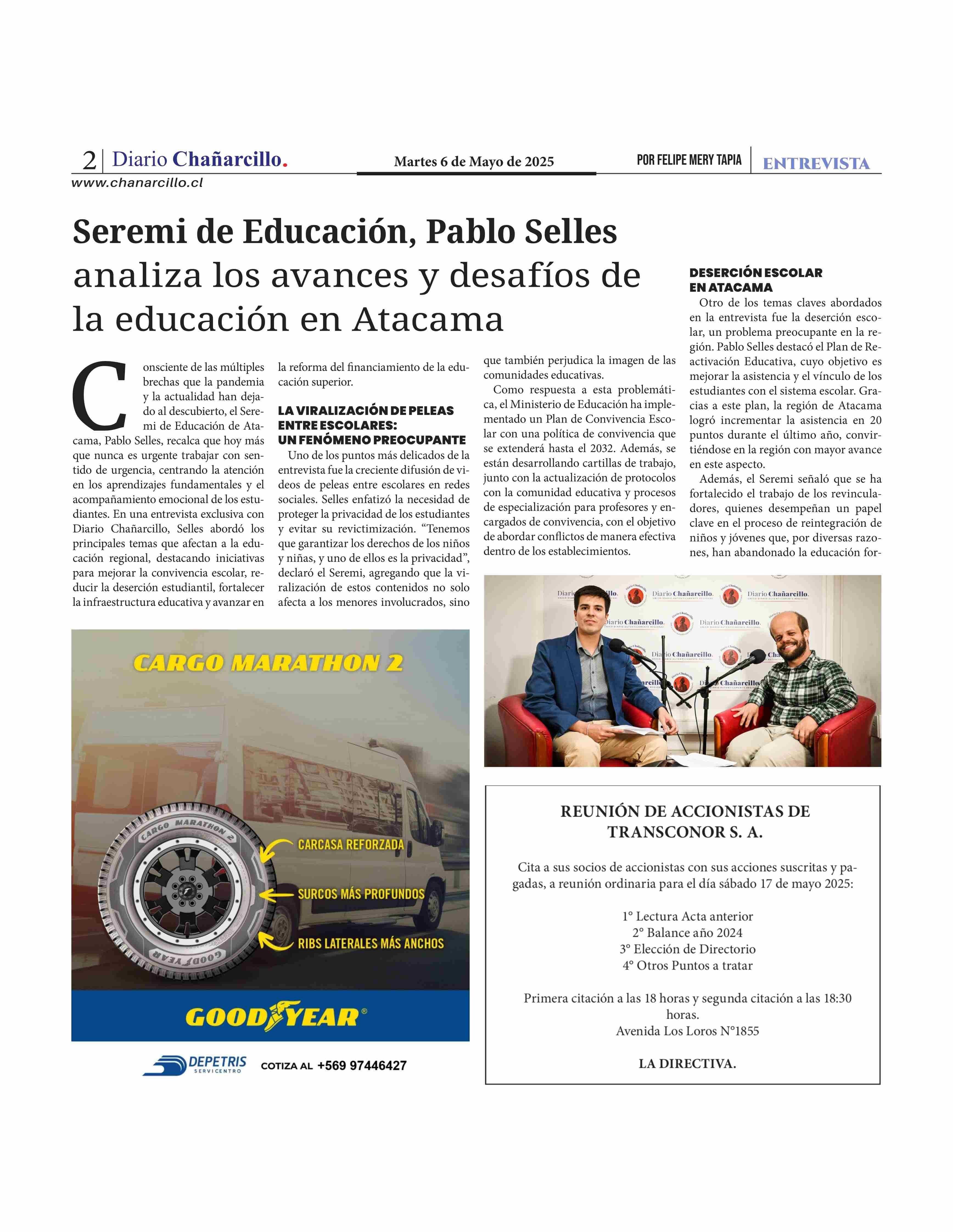 Seremi de Educación, Pablo Selles analiza los avances y desafíos de la educación en Atacama 06-05-2025 Diario Chañarcillo |