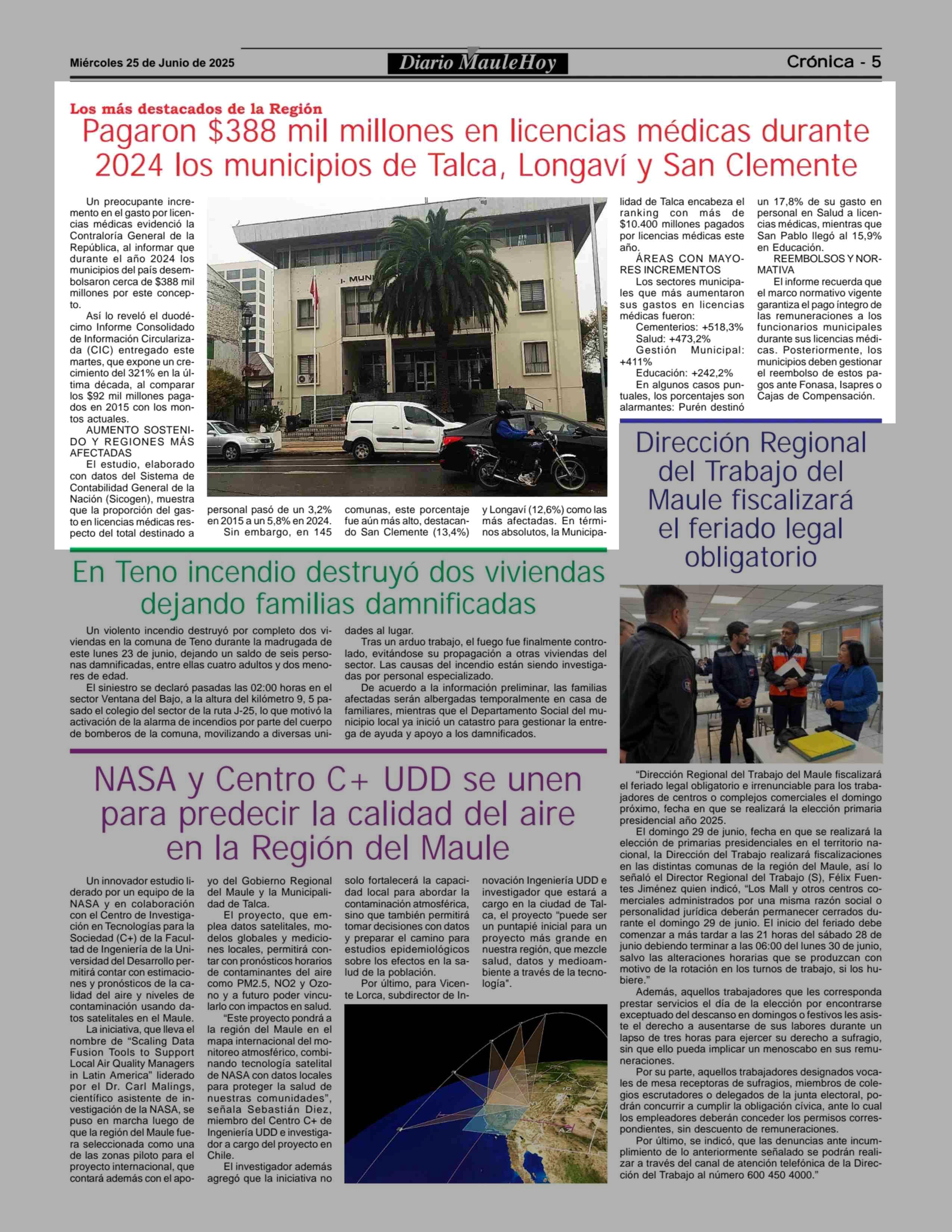 Pagaron $388 mil millones en licencias médicas durante 2024 los municipios de Talca, Longaví y San Clemente 25-06-2025 Maule Hoy |