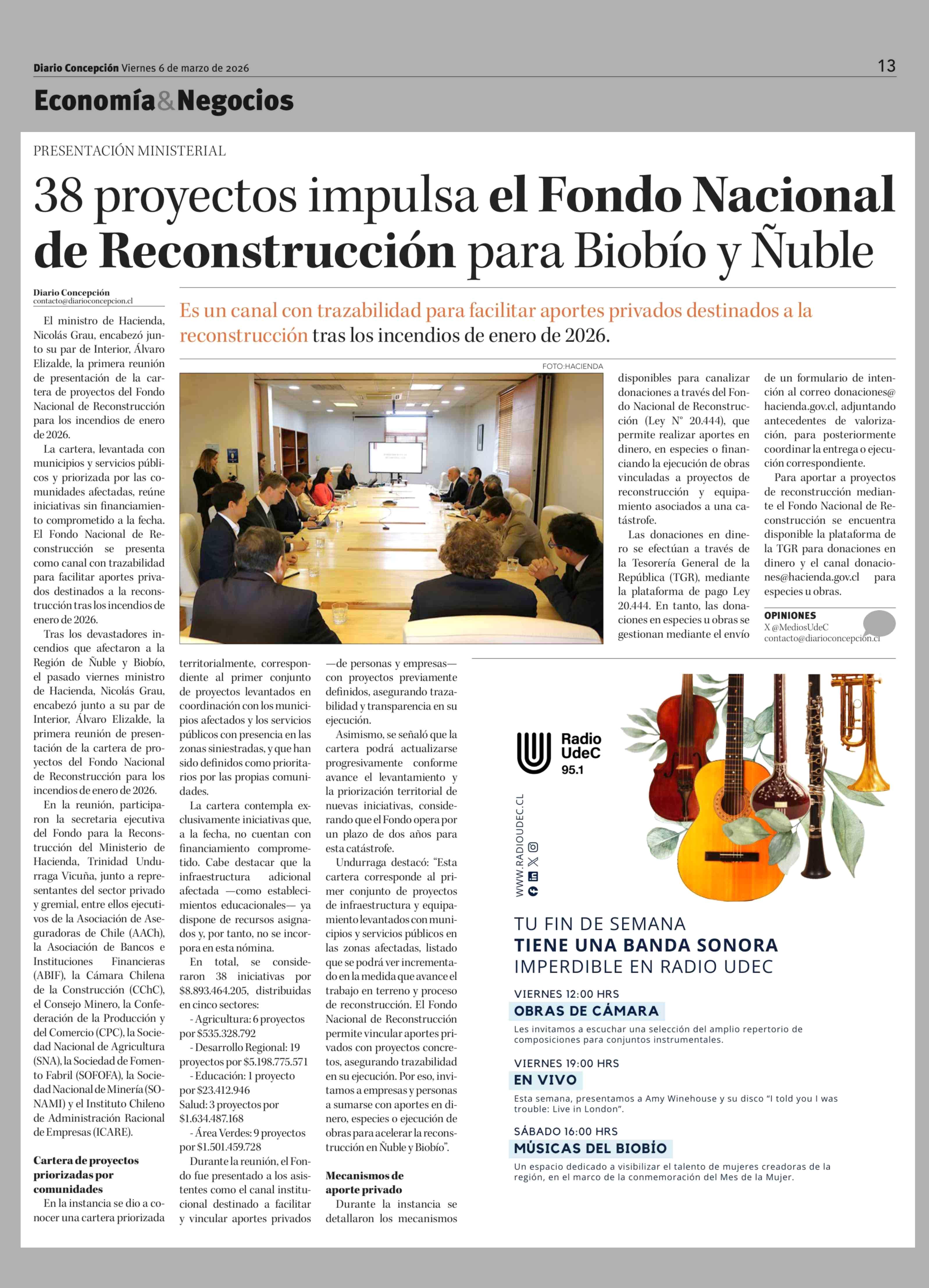 Título: 38 Proyectos impulsa el Fondo Nacional de Reconstrucción para Biobío y Ñuble