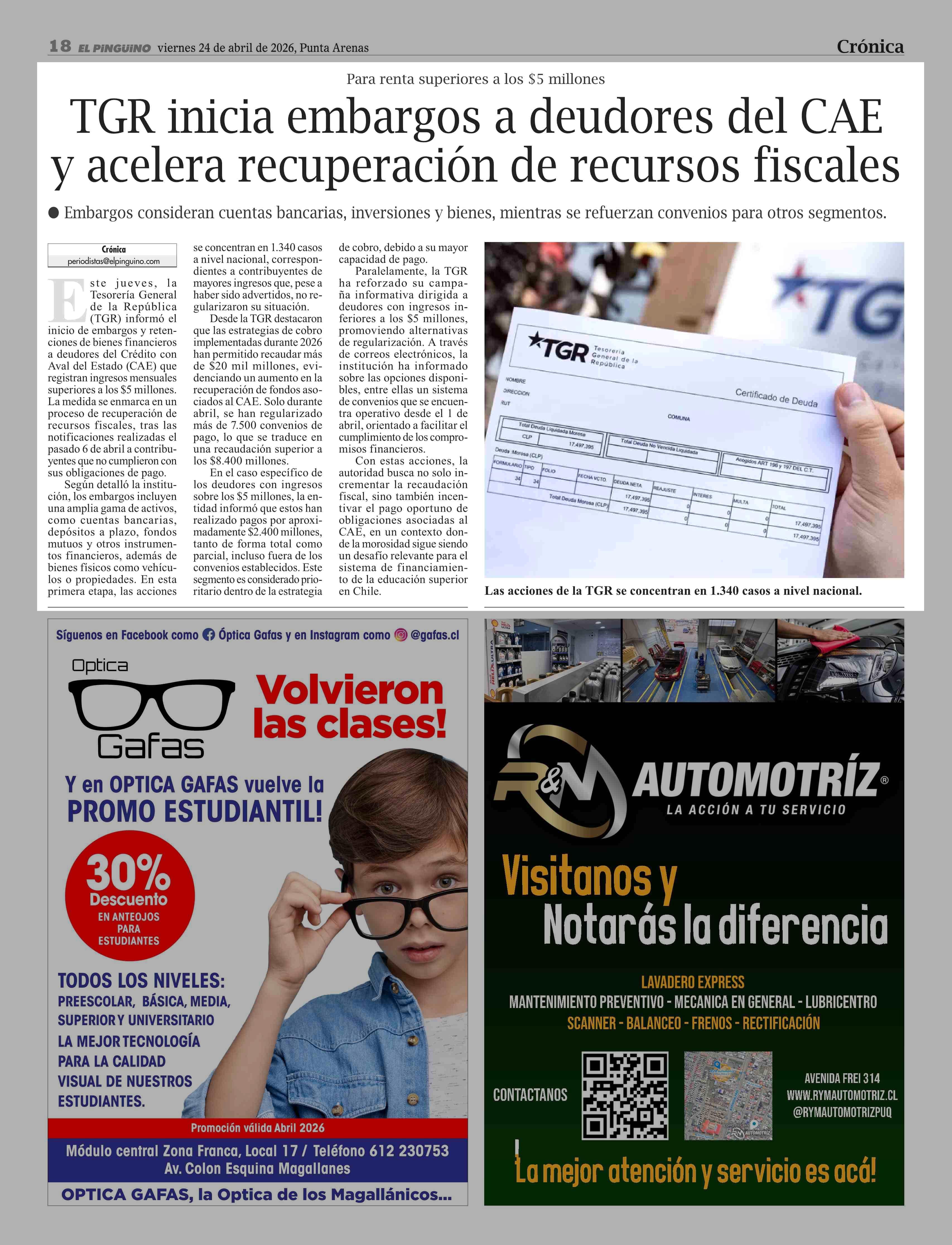 Fecha: 24-04-2026 Sector: Noticia general Región: Región de Magallanes y de la Antártica Chilena