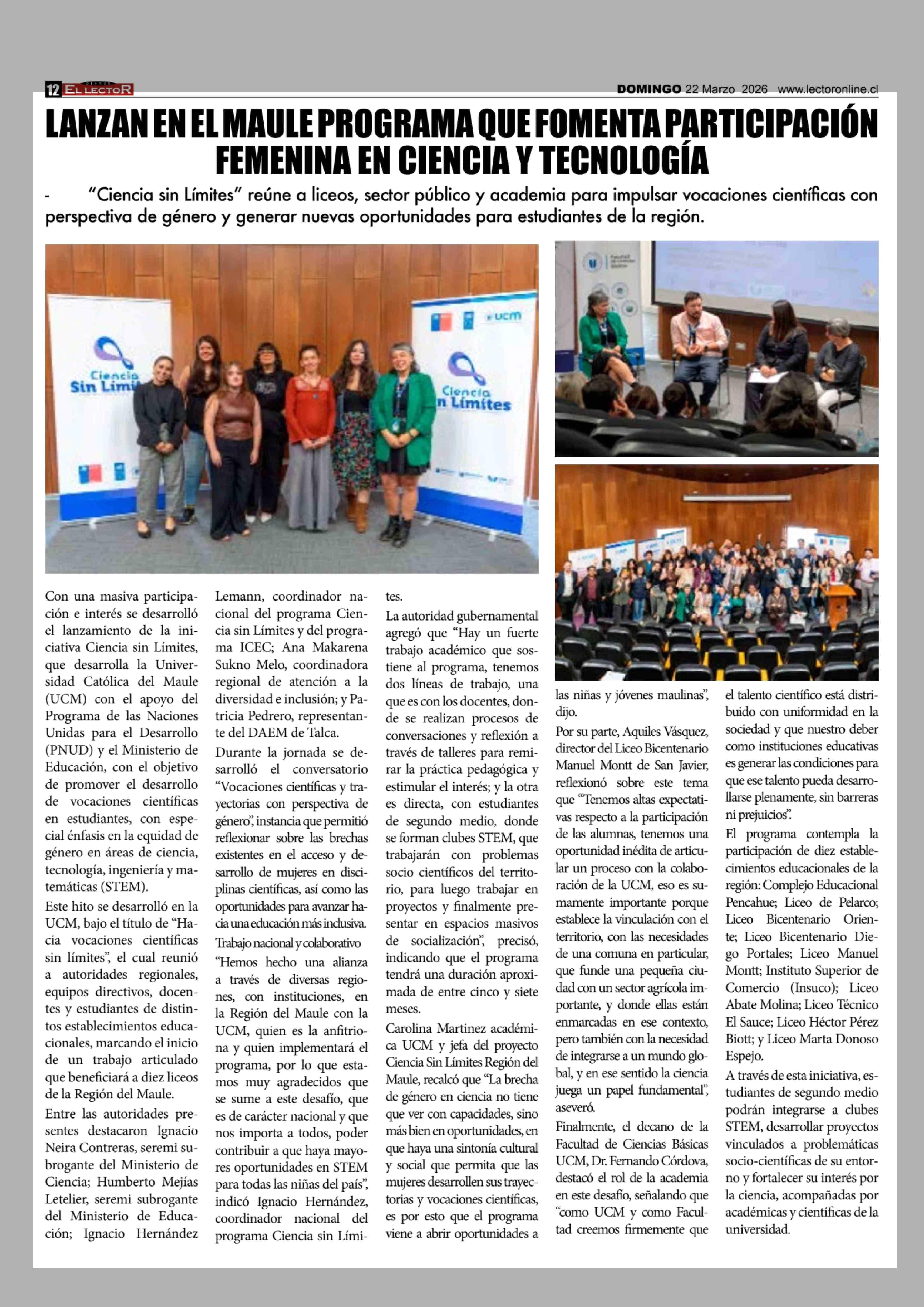 Título: LANZAN EN EL MAULE PROGRAMA QUE FOMENTA PARTICIPACIÓN FEMENINA EN CIENCIA Y TECNOLOGÍA