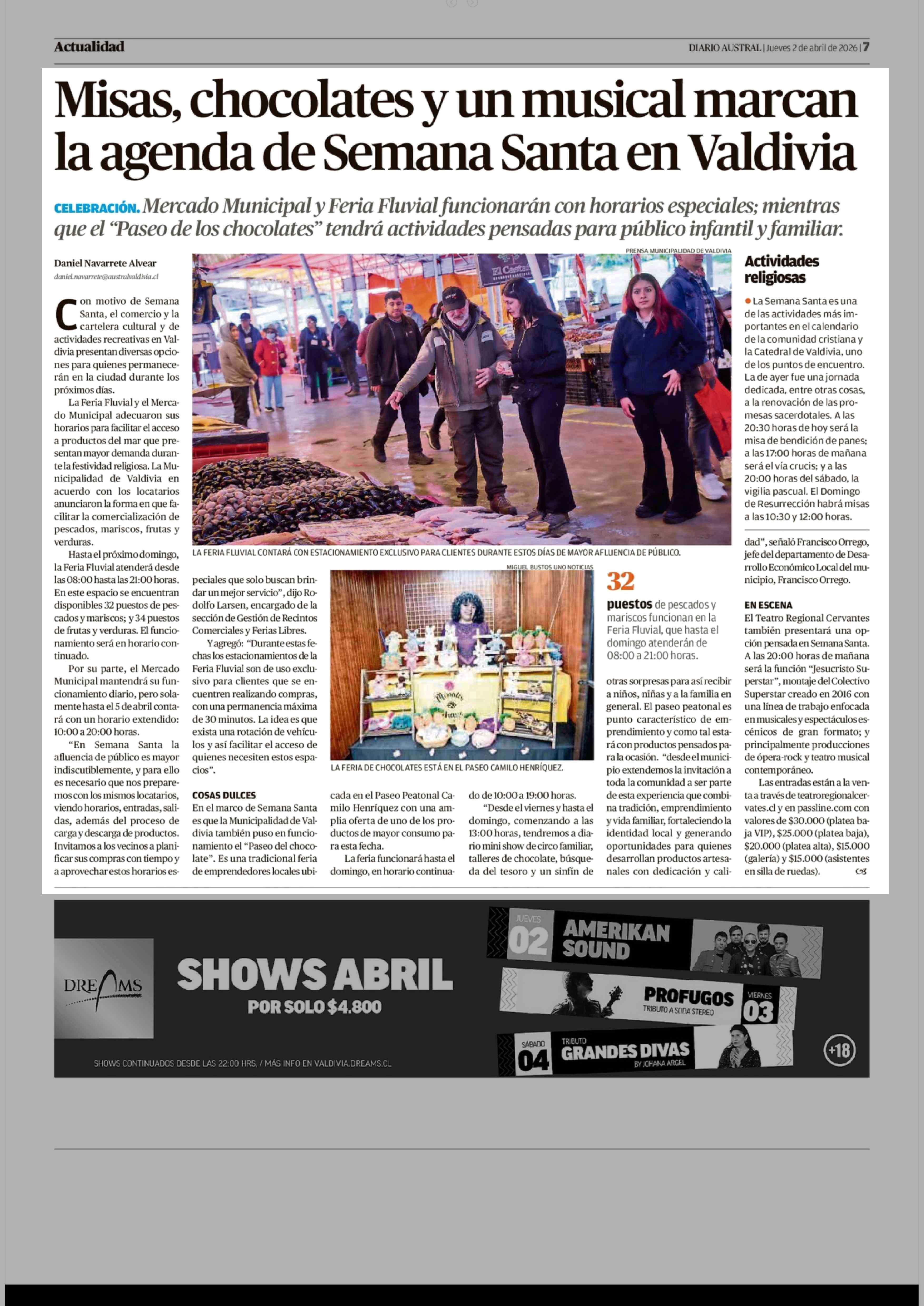 Título: Misas, chocolates y un musical marcan la agenda de Semana Santa en Valdivia
