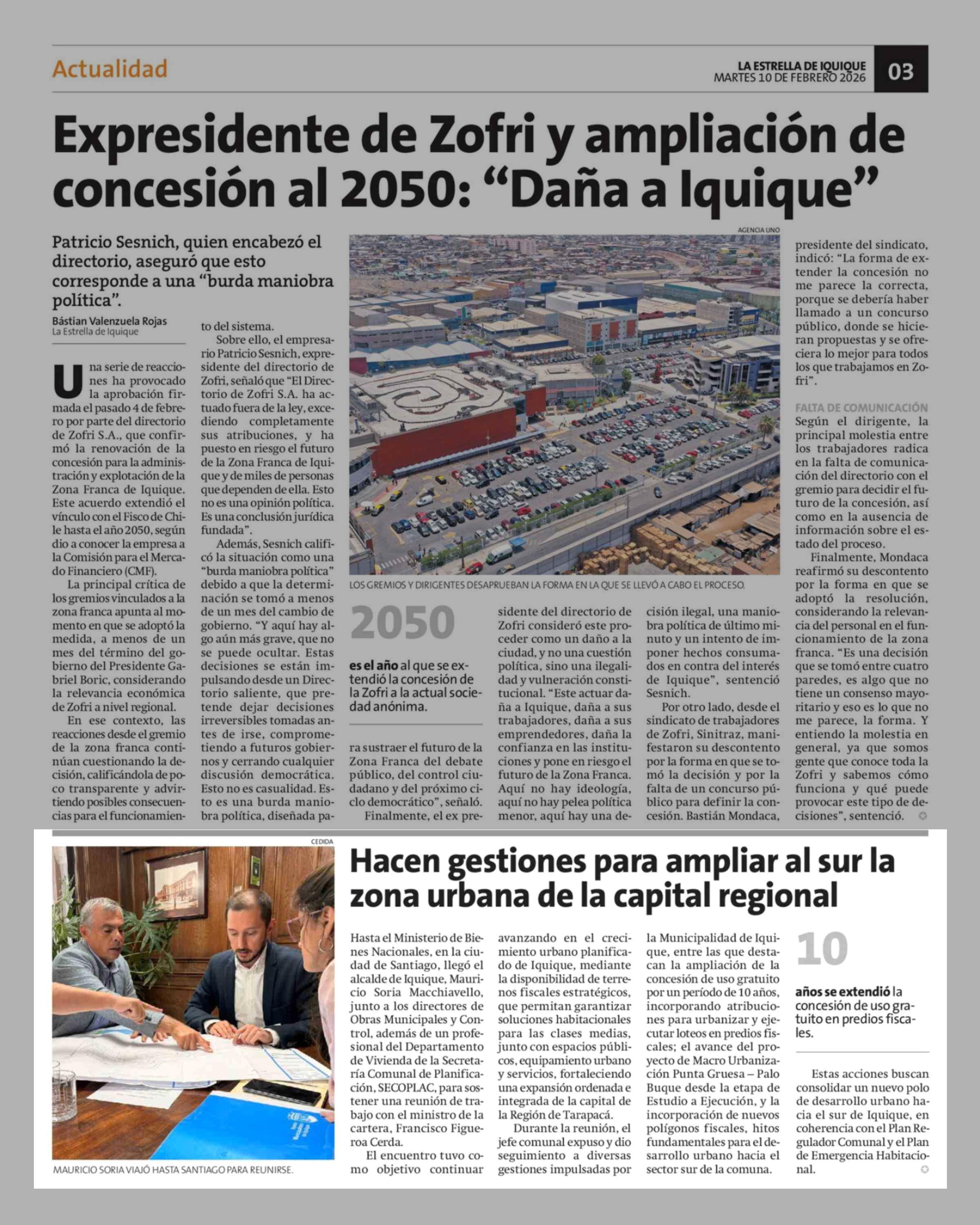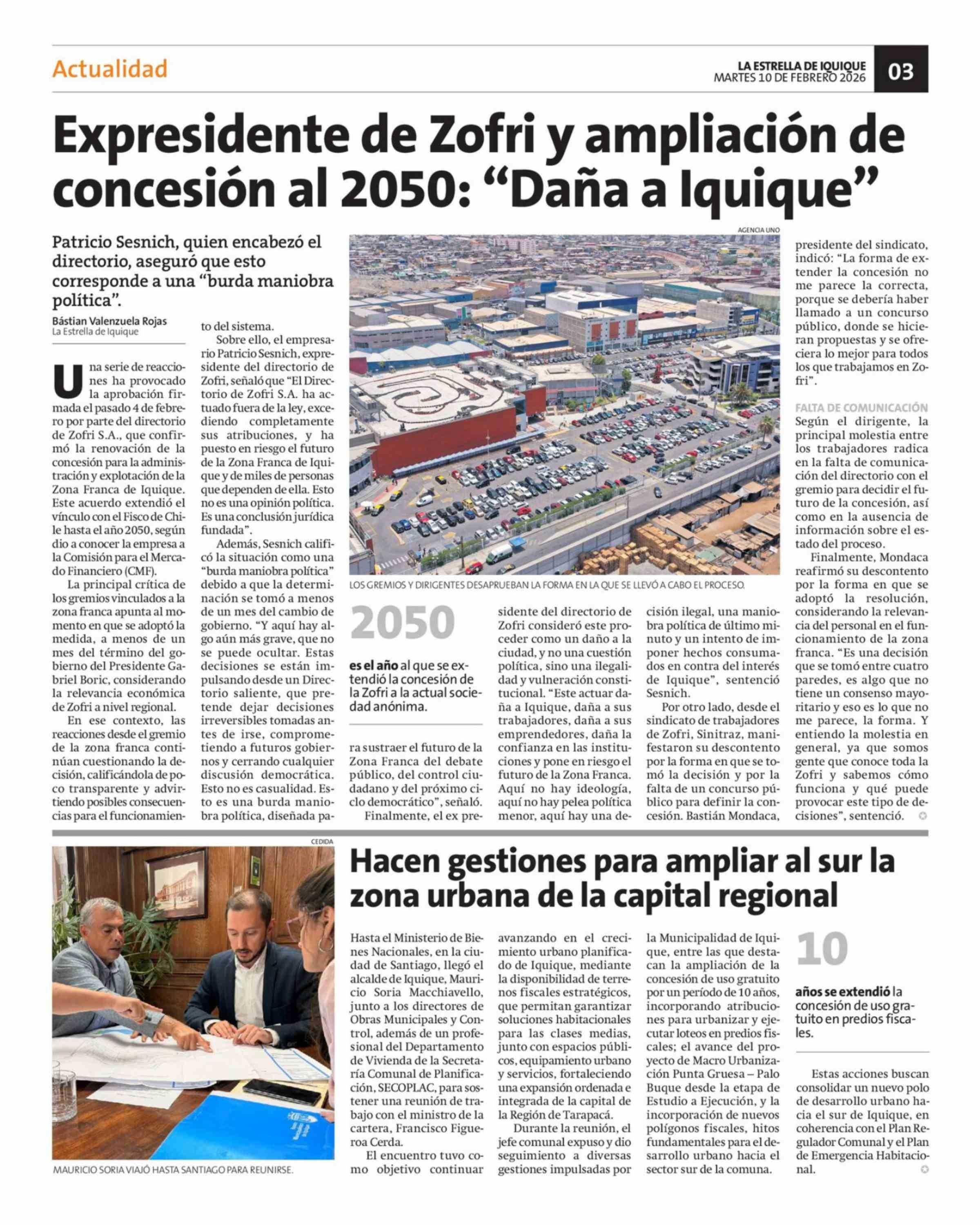 Fecha: 10-02-2026 Sector: Noticia general Región: Región de Tarapacá