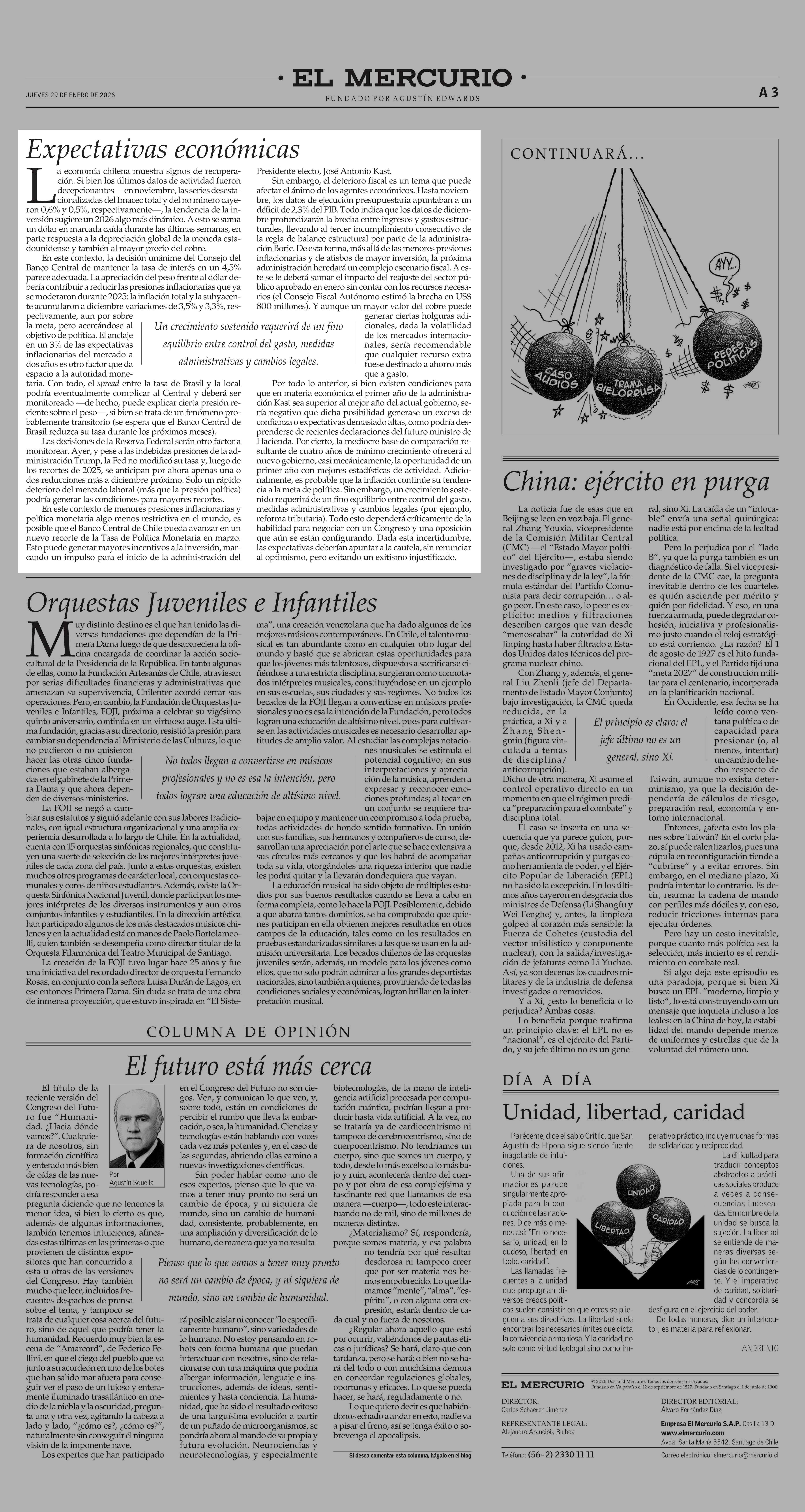 Editorial: Expectativas económicas 29-01-2026 El Mercurio |