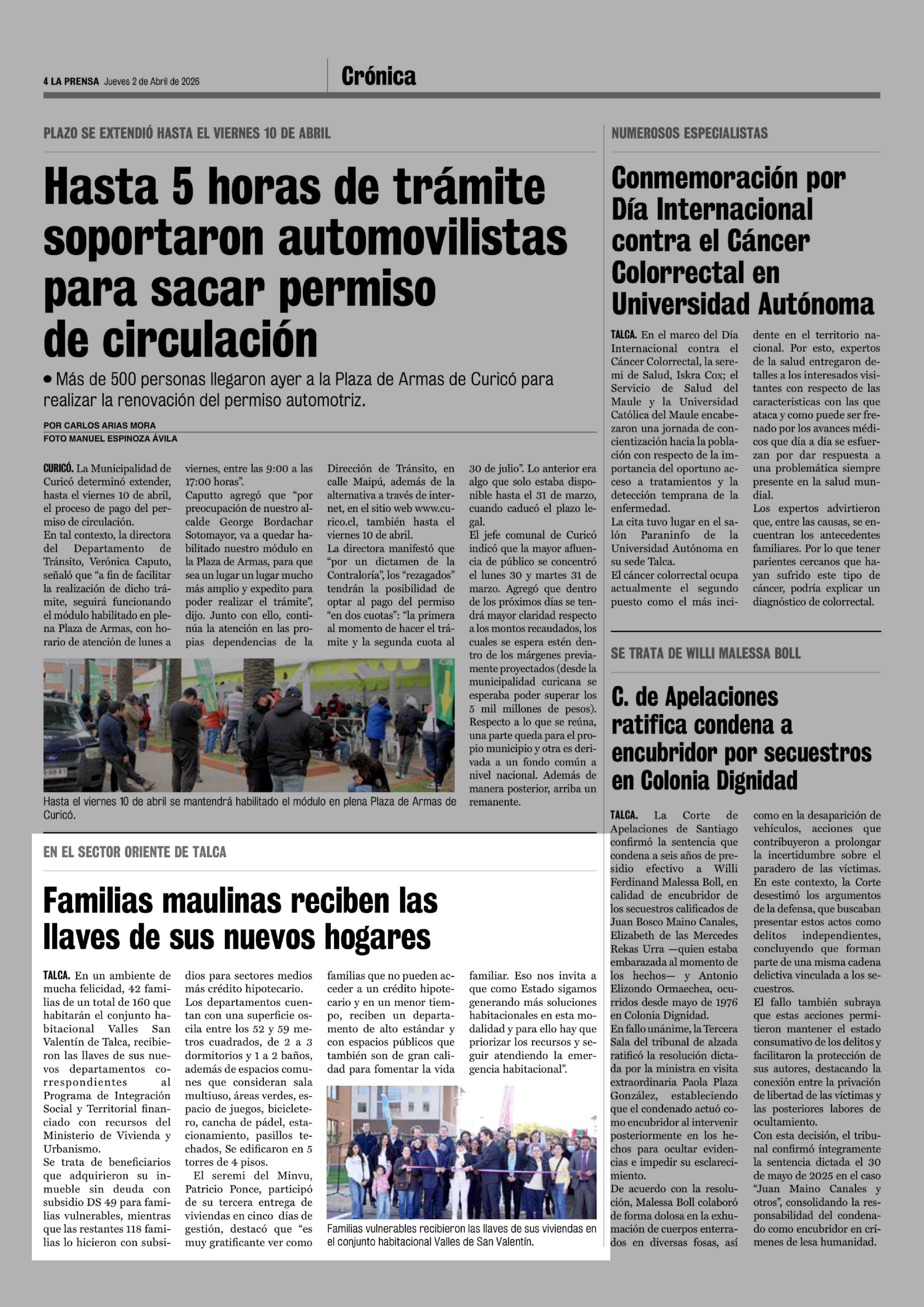 | Fecha: | 02-04-2026 | Sector: | Noticia general | Región: | Región del Maule |