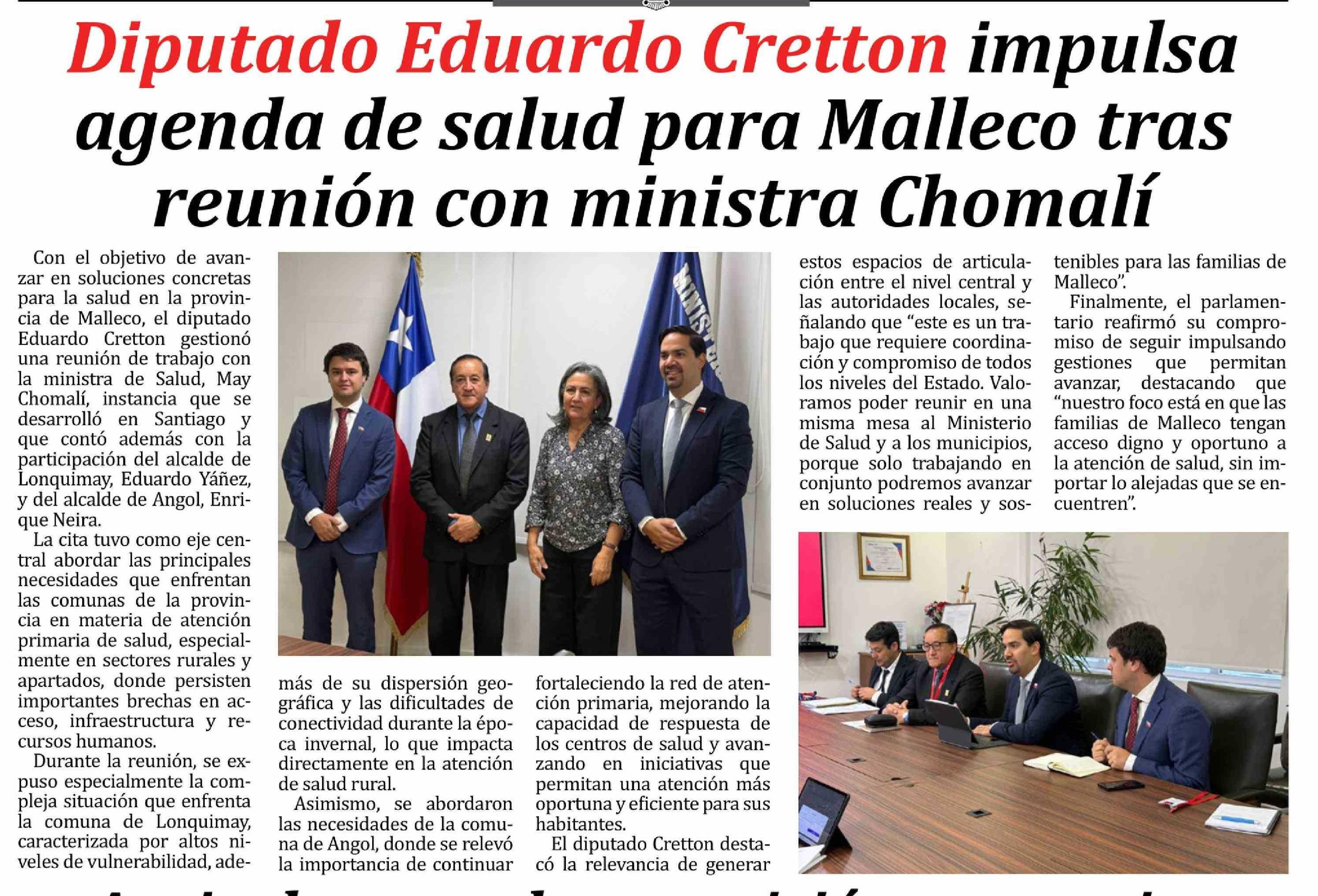Título: Diputado Eduardo Cretton impulsa agenda de salud para Malleco tras reunión con ministra Chomalí