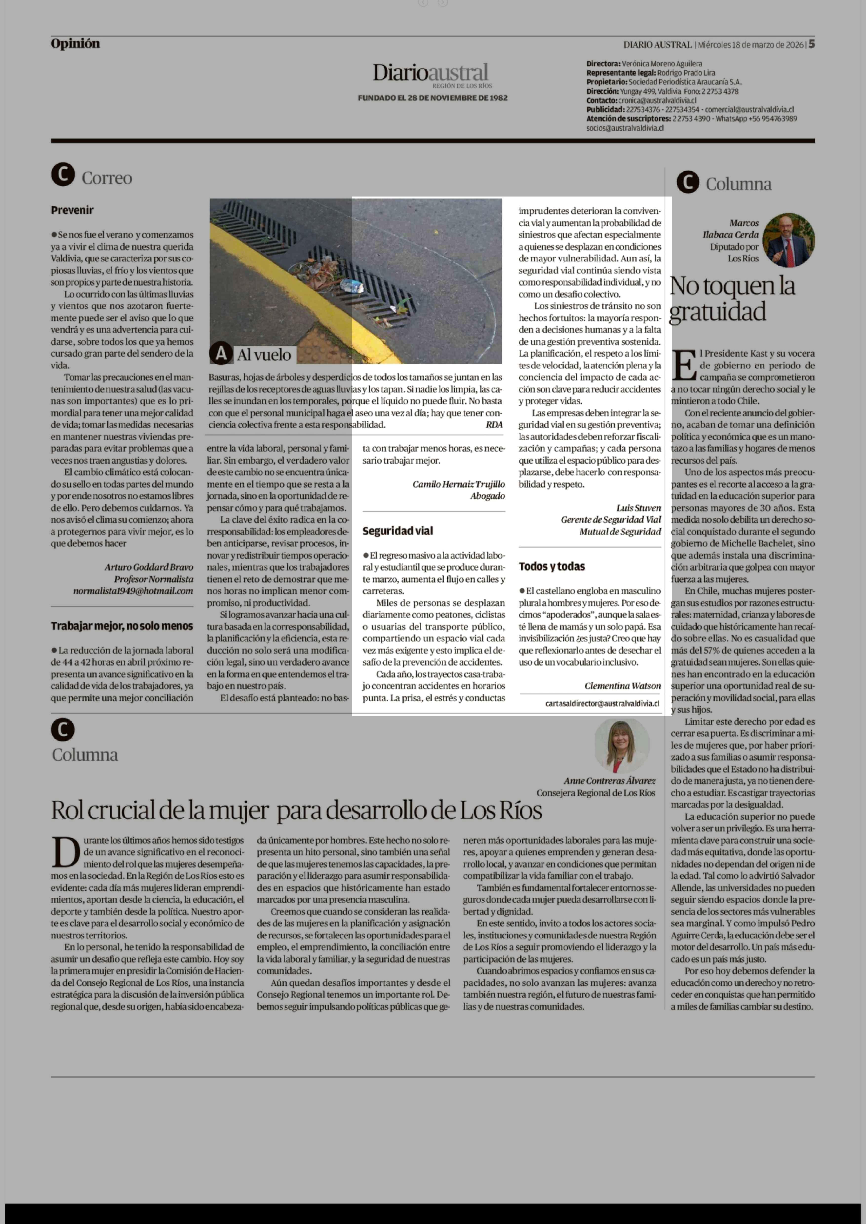 Cartas: Seguridad vial 18-03-2026 Diario Austral Región de Los Ríos |