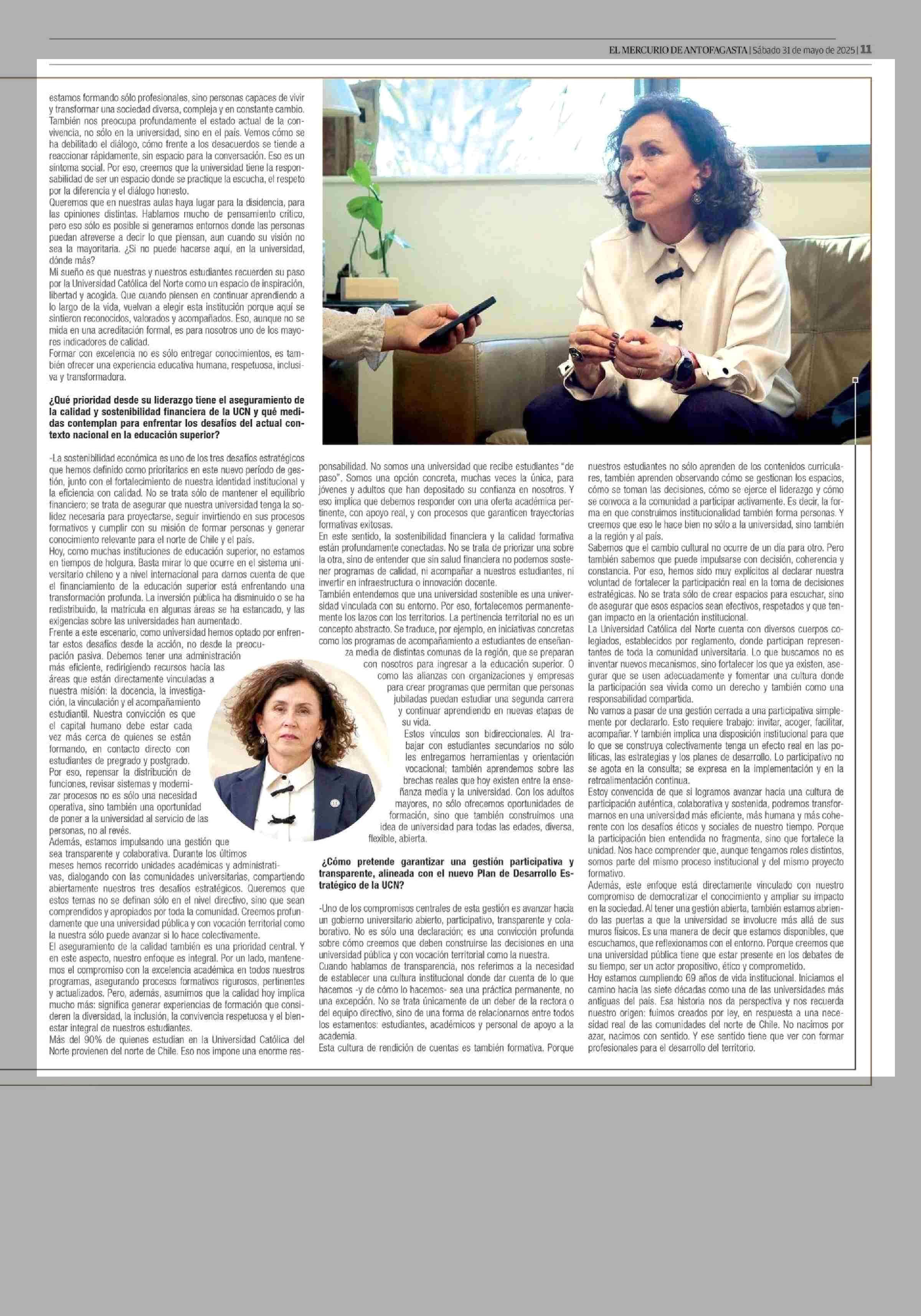 “La UCN debe ser una universidad abierta, solidaria y comprometida con su territorio” 31-05-2025 El Mercurio de Antofagasta |