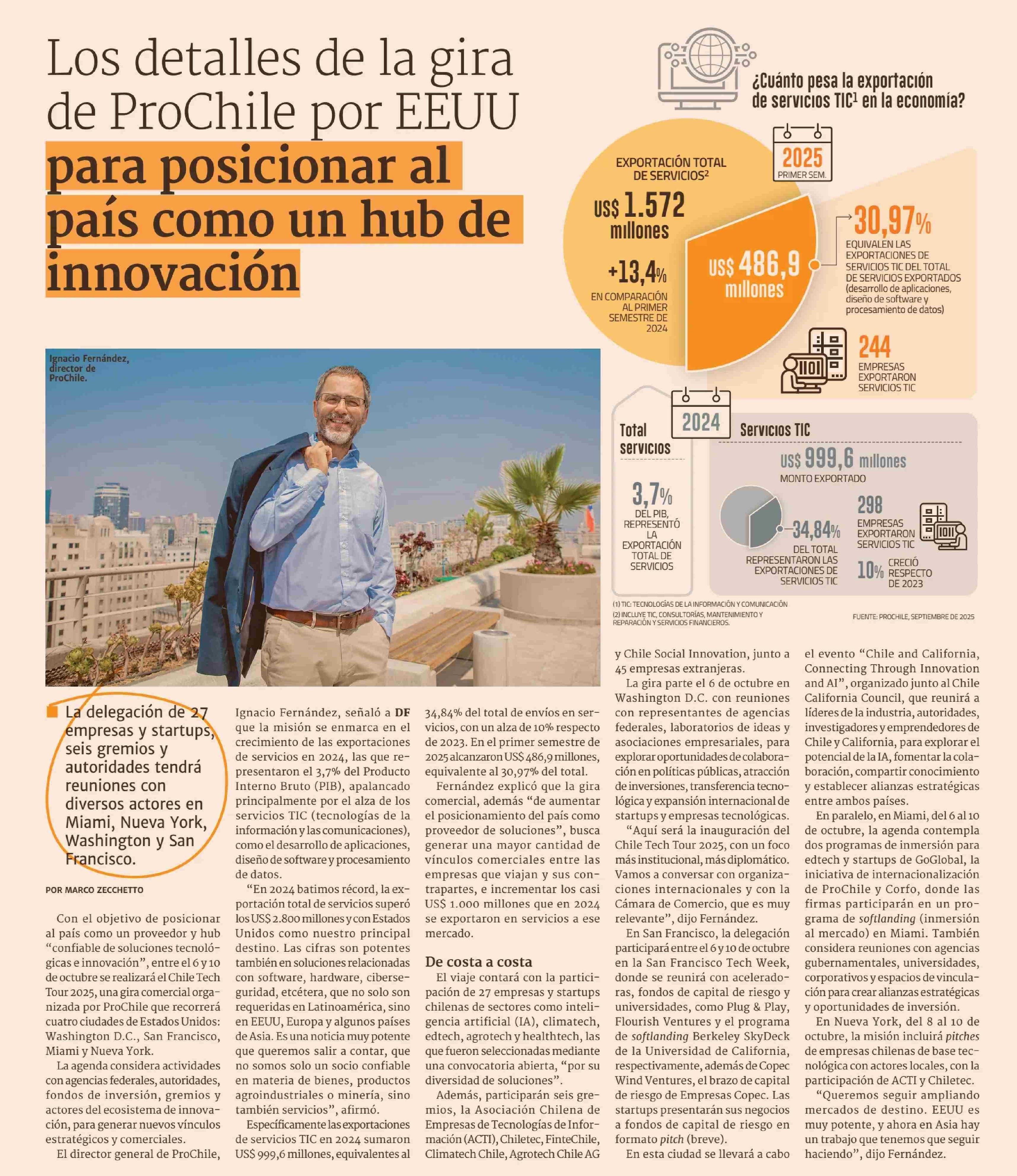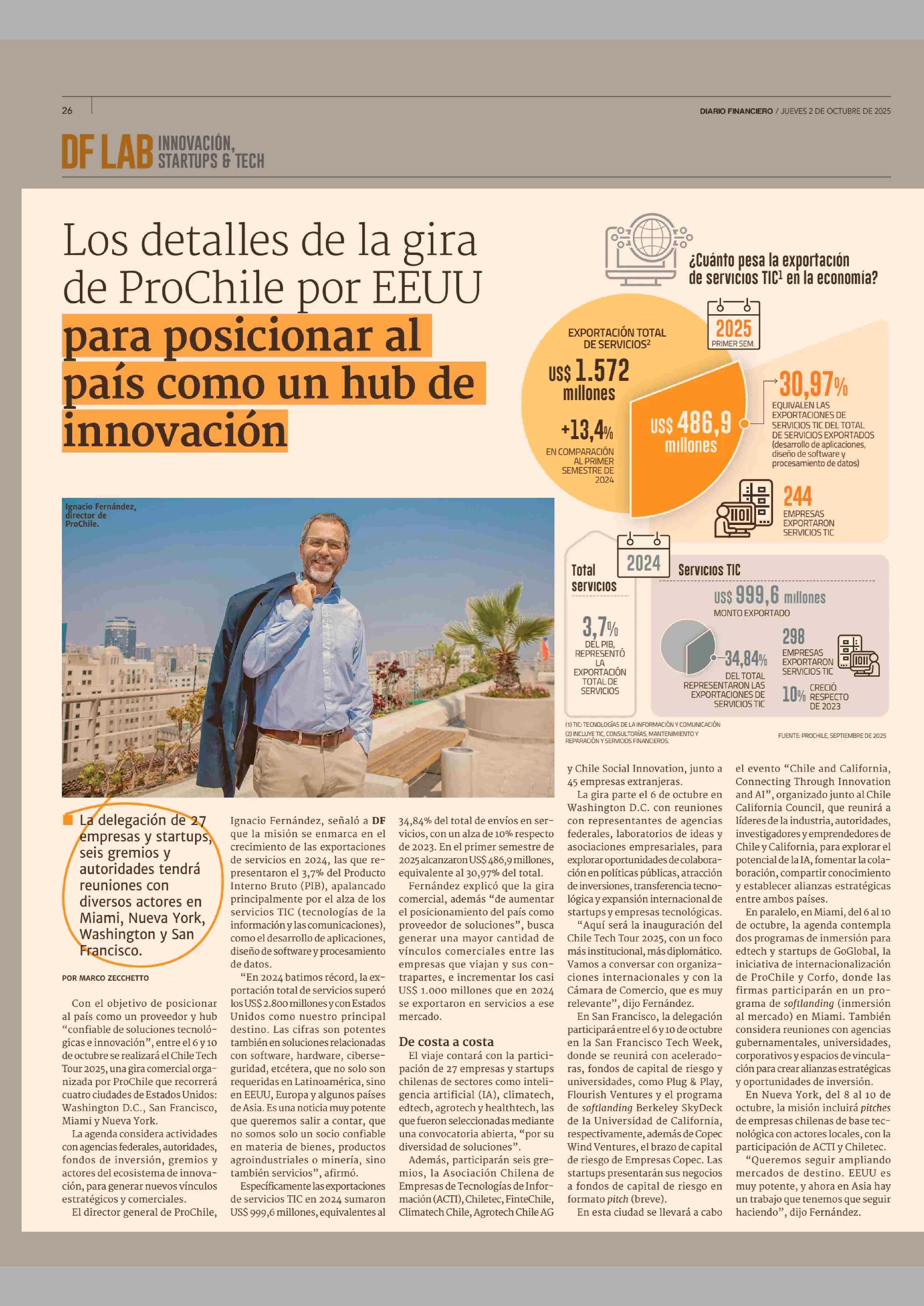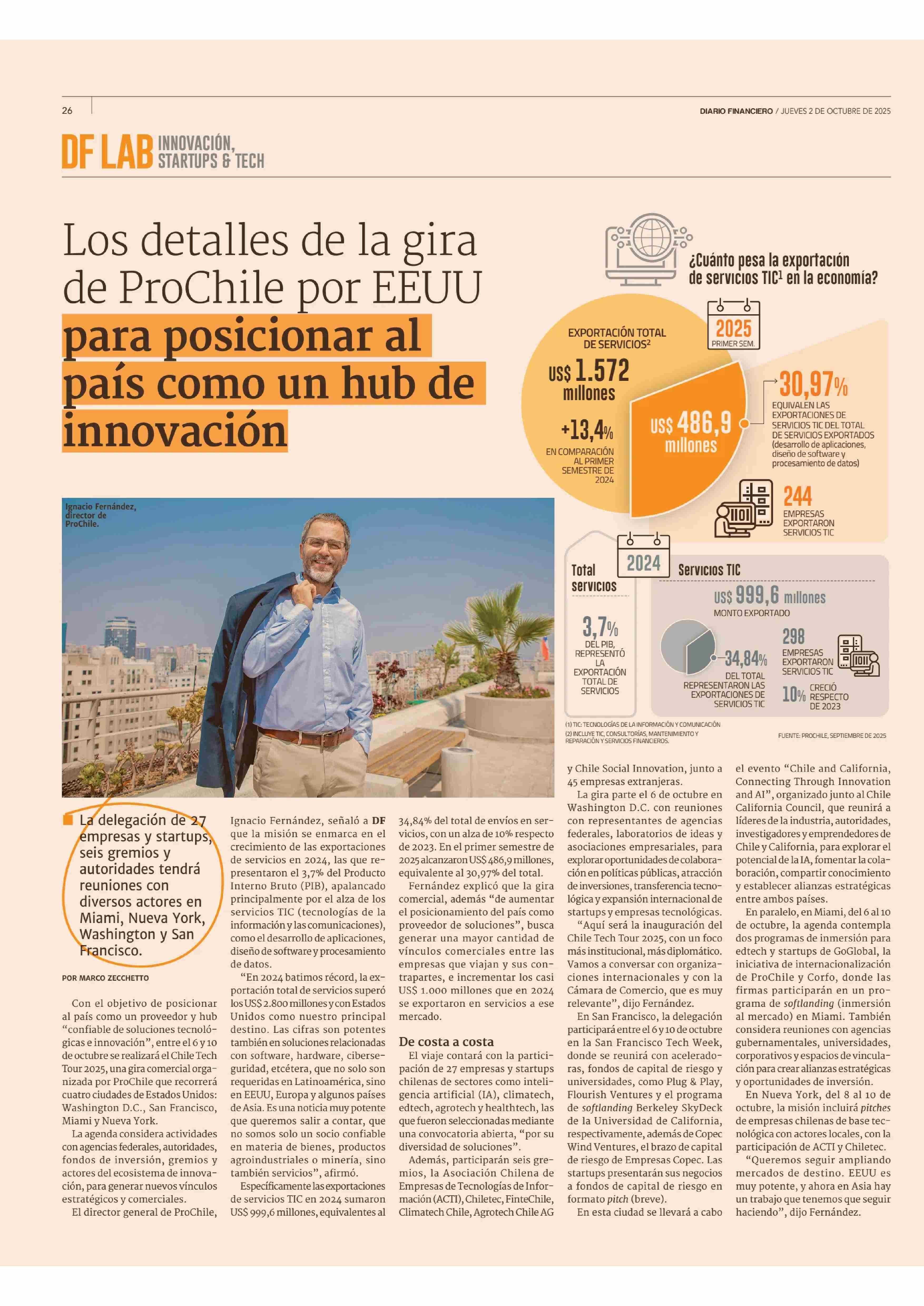 Los detalles de la gira de ProChile por FEUU para posicionar al país como un hub de innovación 02-10-2025 Diario Financiero |