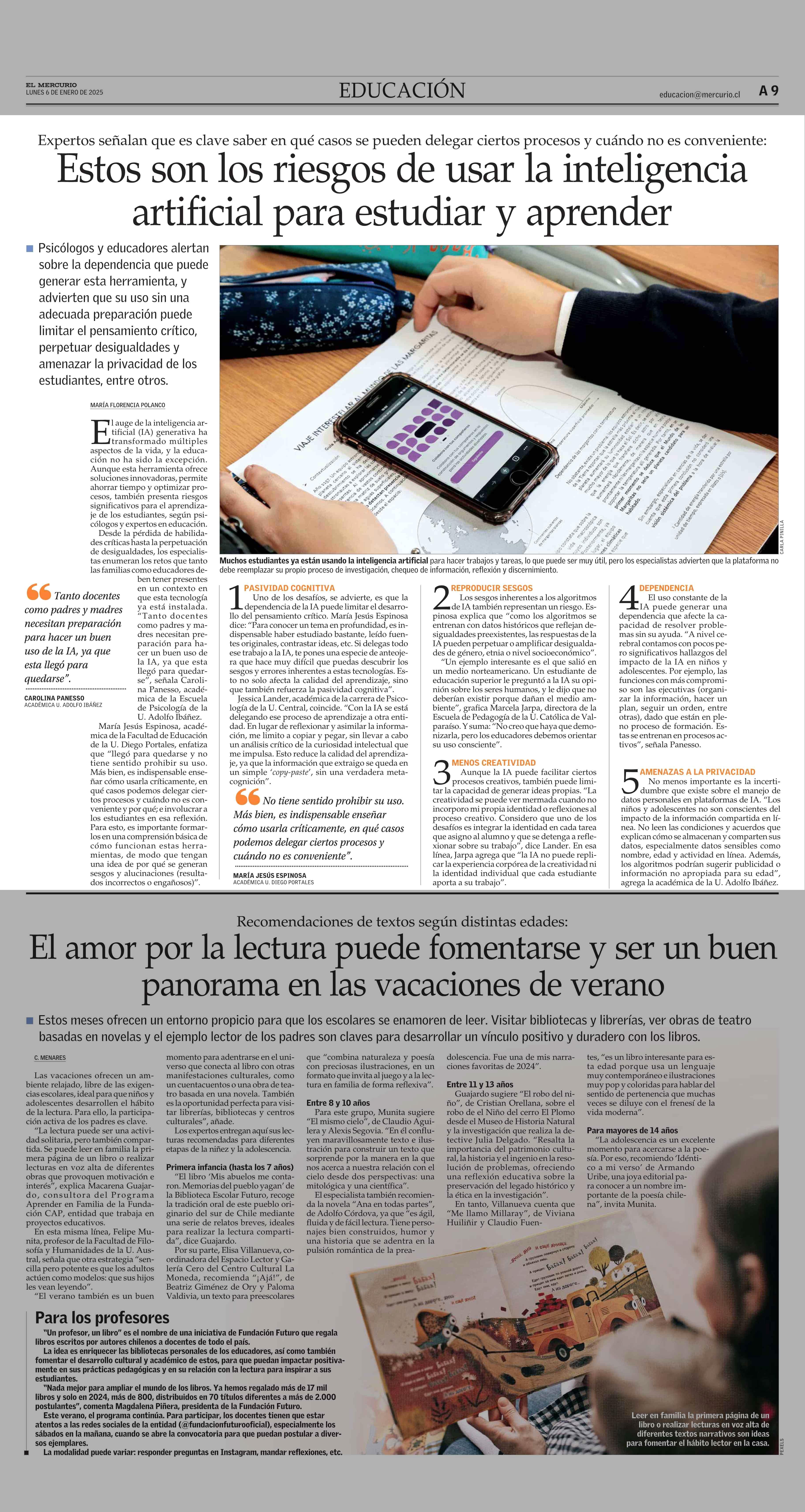 Estos son los riesgos de usar la inteligencia artificial para estudiar y aprender 06-01-2025 El Mercurio |