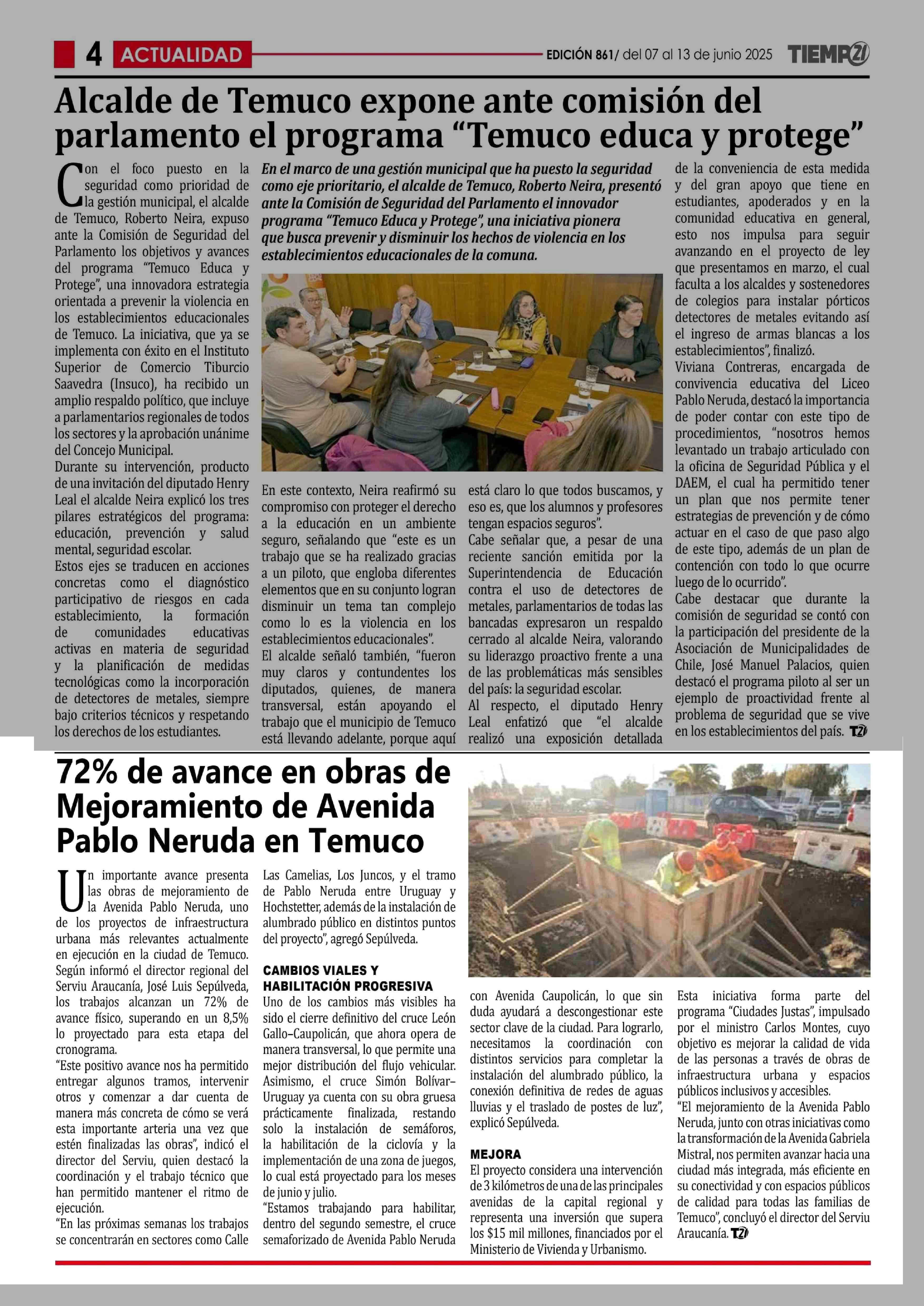 Título: 72% de avance en obras de Mejoramiento de Avenida Pablo Neruda en Temuco