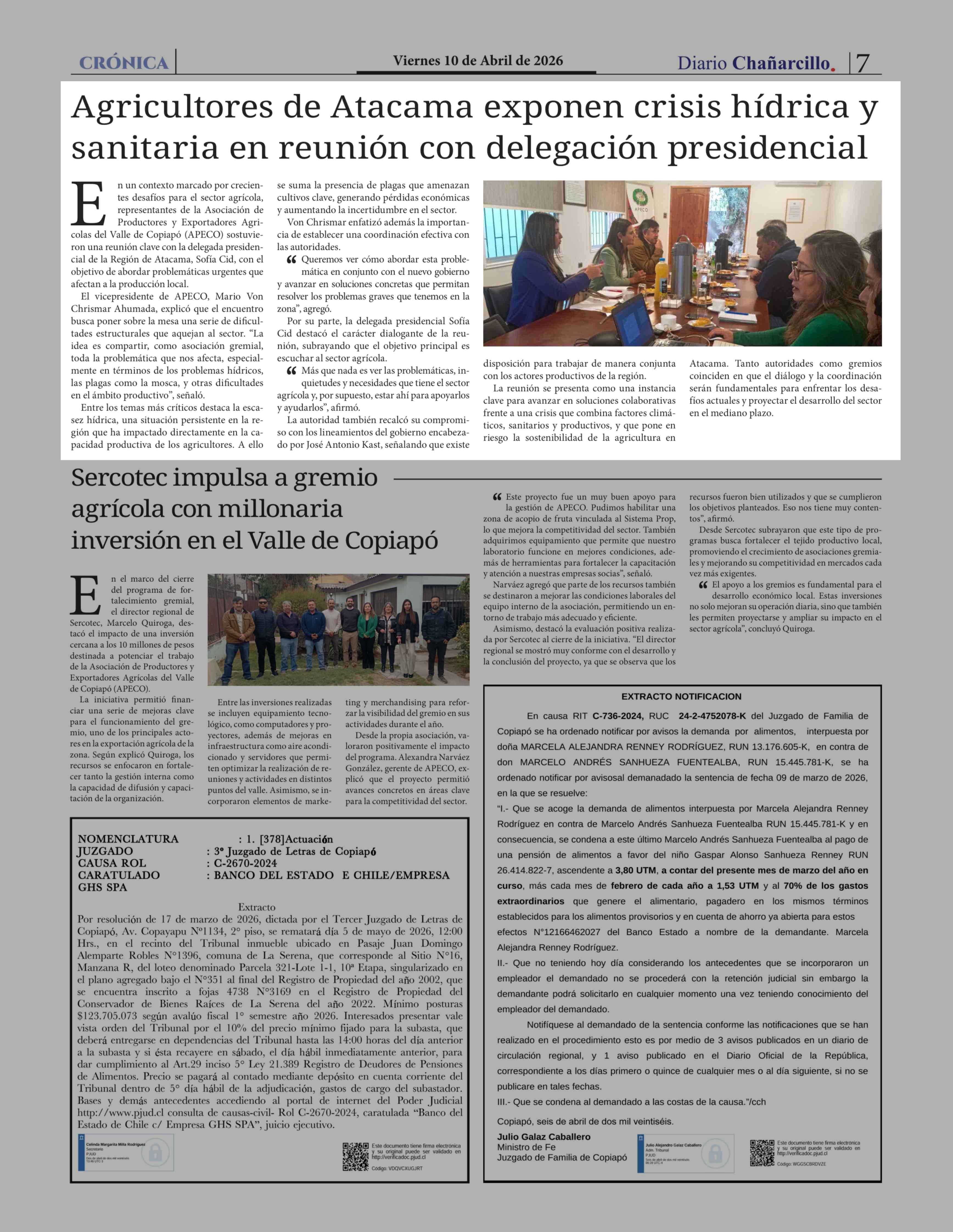 Fuente: Diario Chañarcillo (Diario Chanarcillo) Página(s): 7