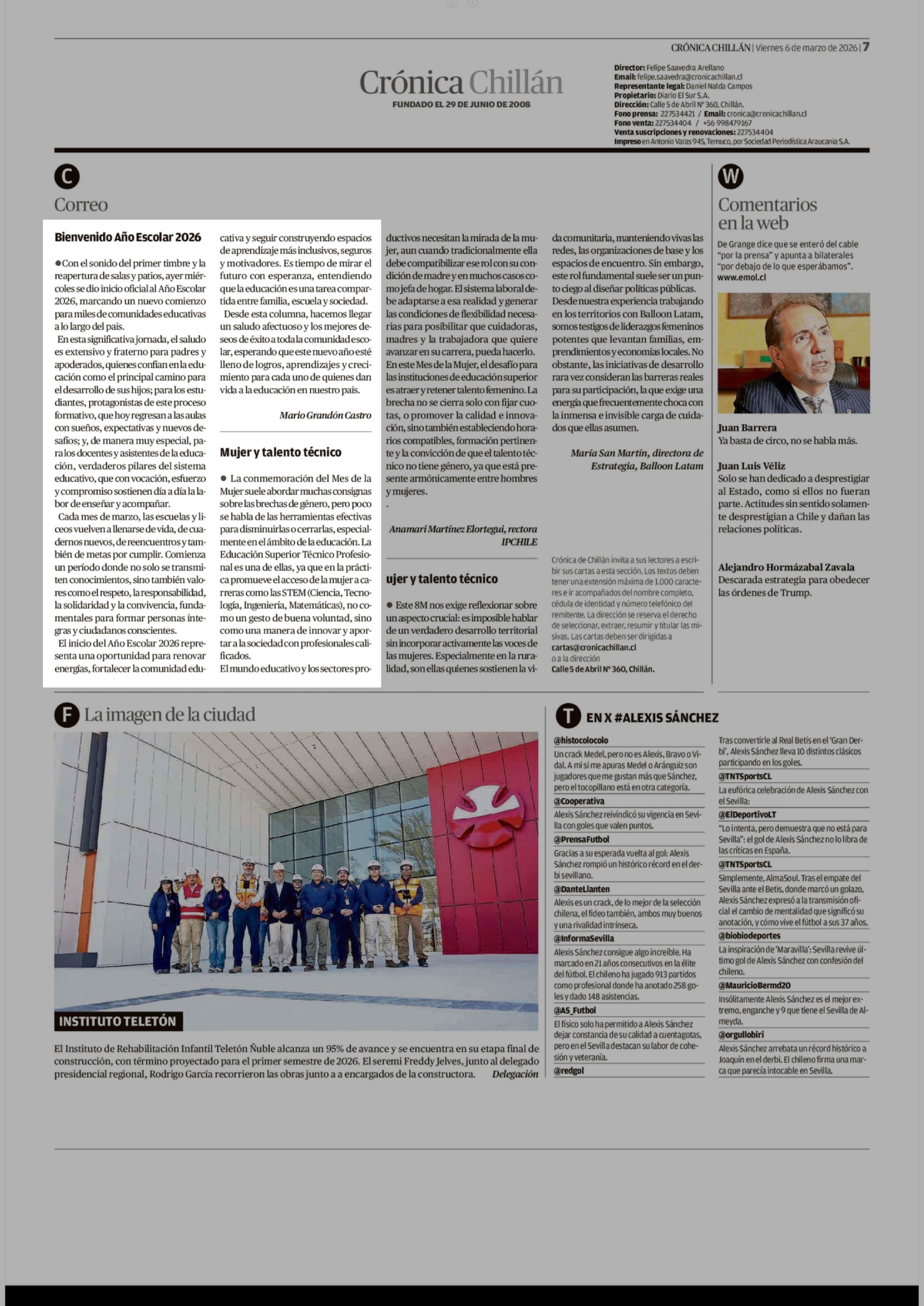 Cartas: Bienvenido Año Escolar 2026 06-03-2026 Crónica de Chillán |