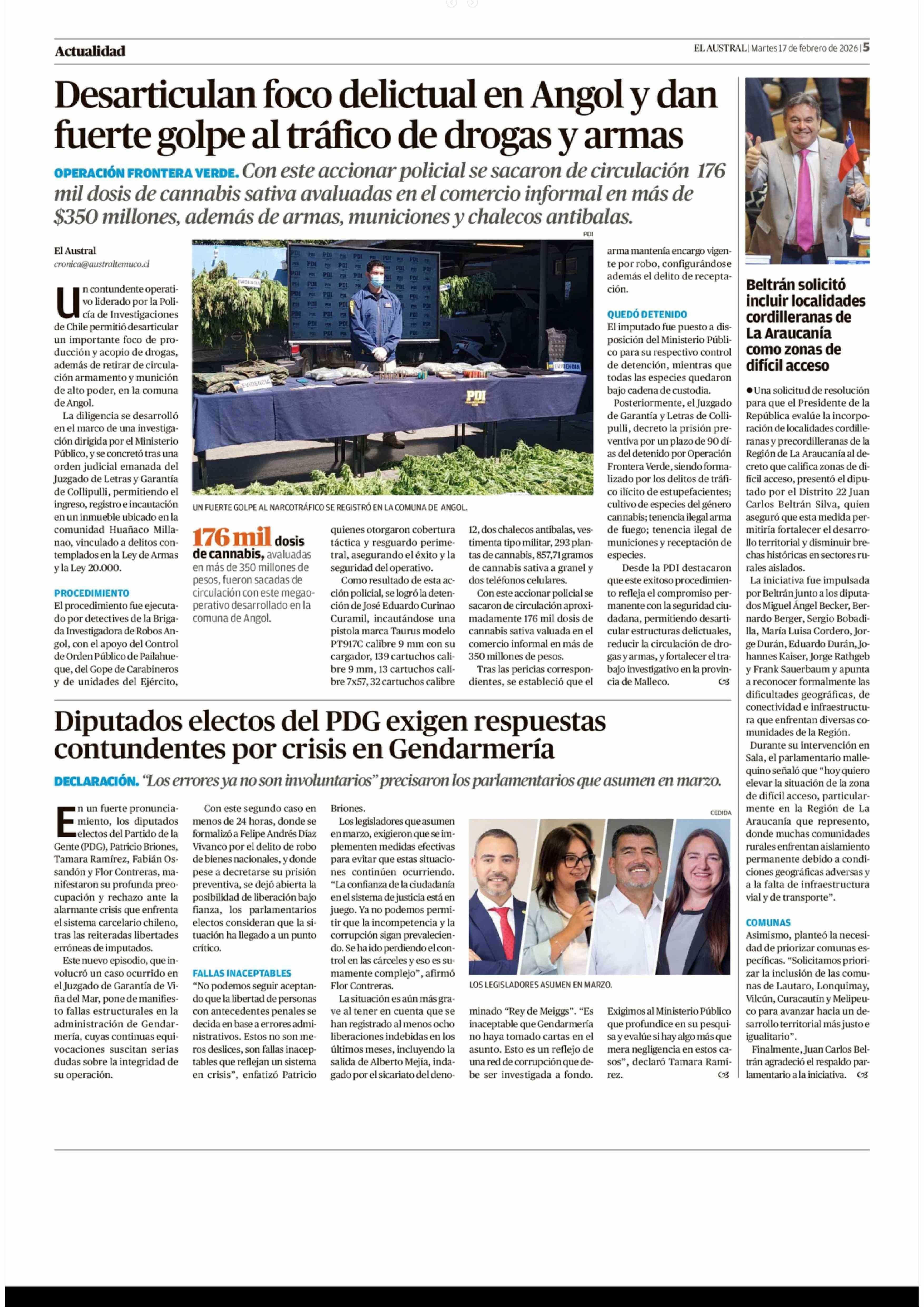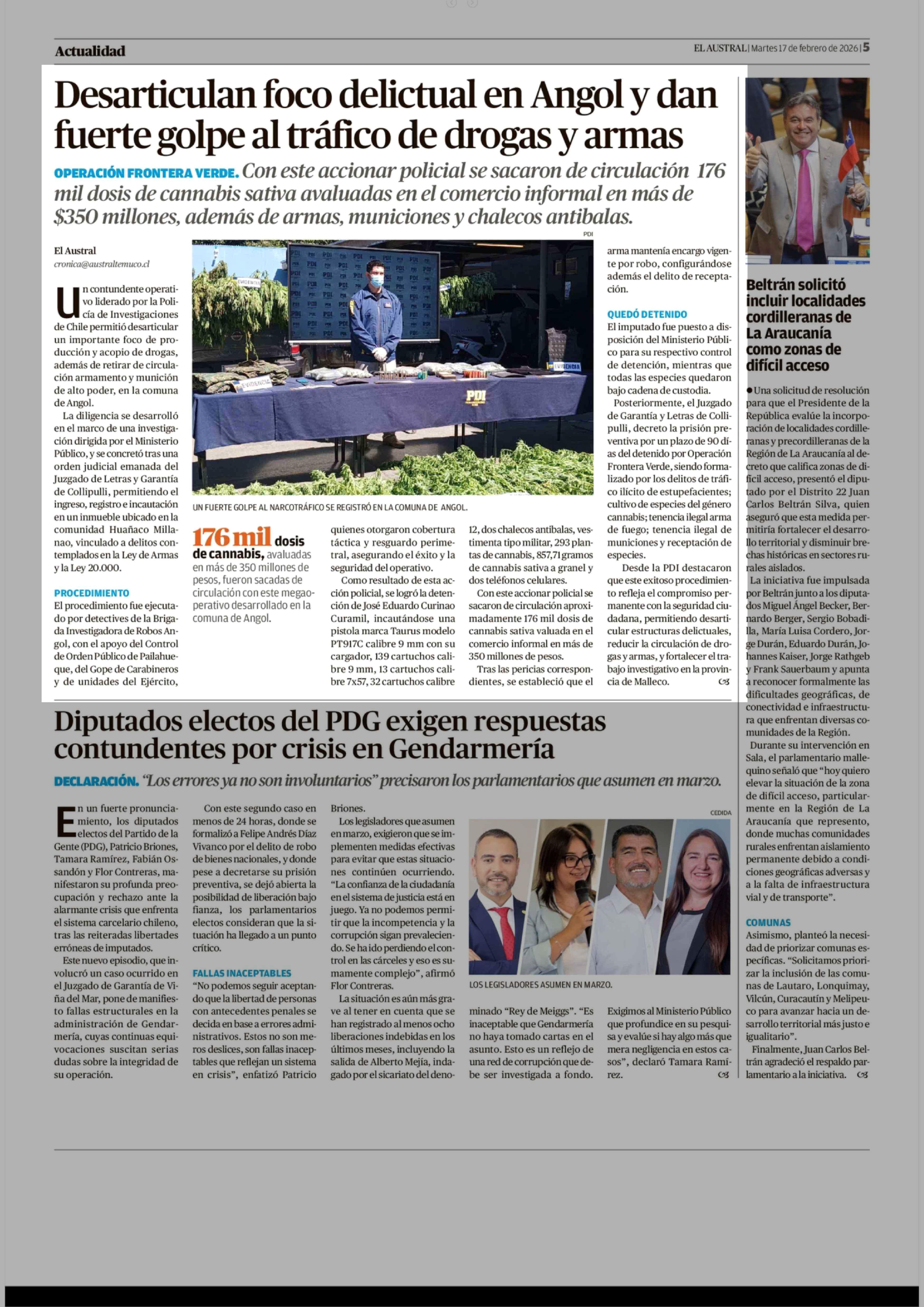 Desarticulan foco delictual en Angol y dan fuerte golpe al tráfico de drogas y armas 17-02-2026 El Austral de la Araucanía |