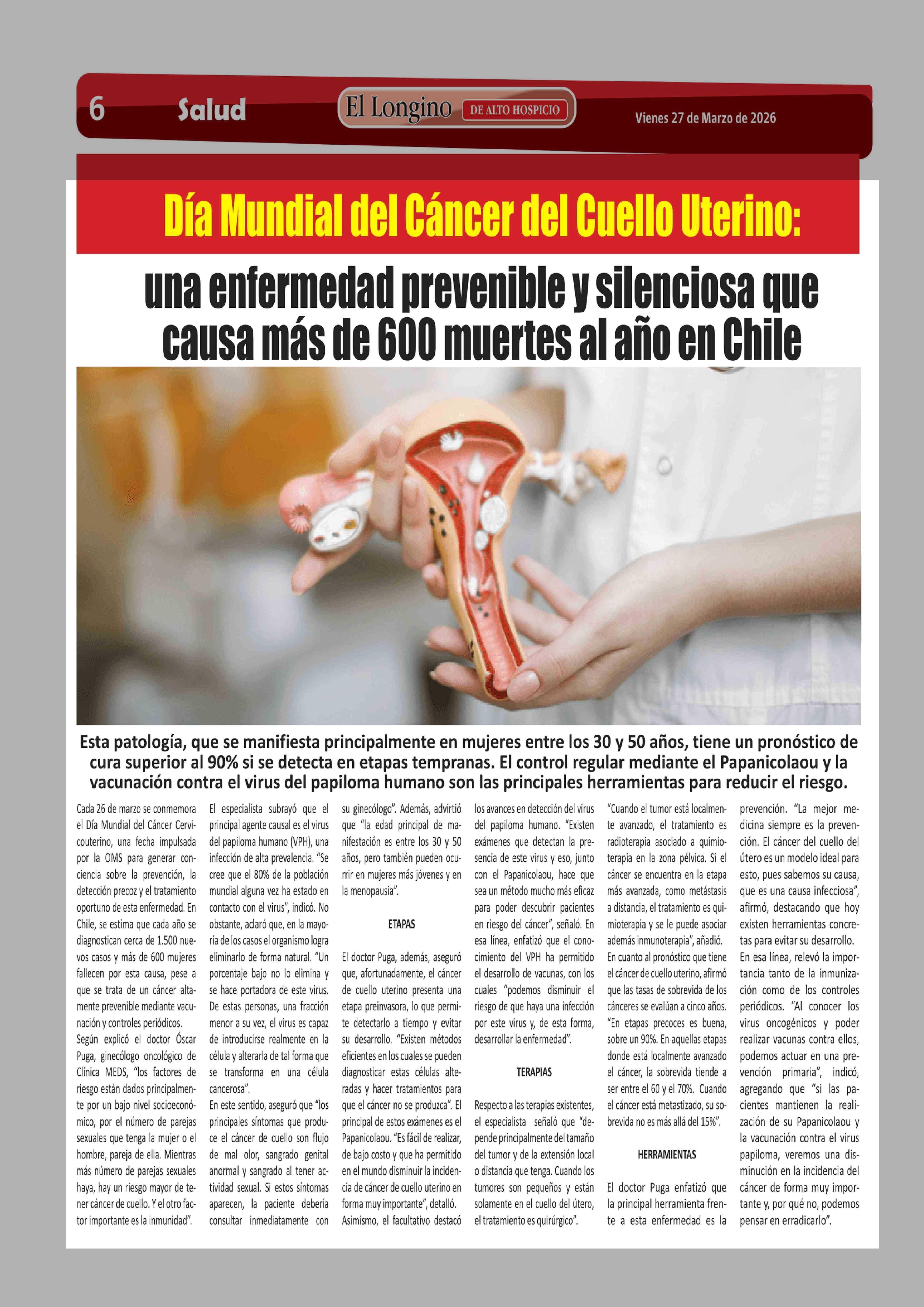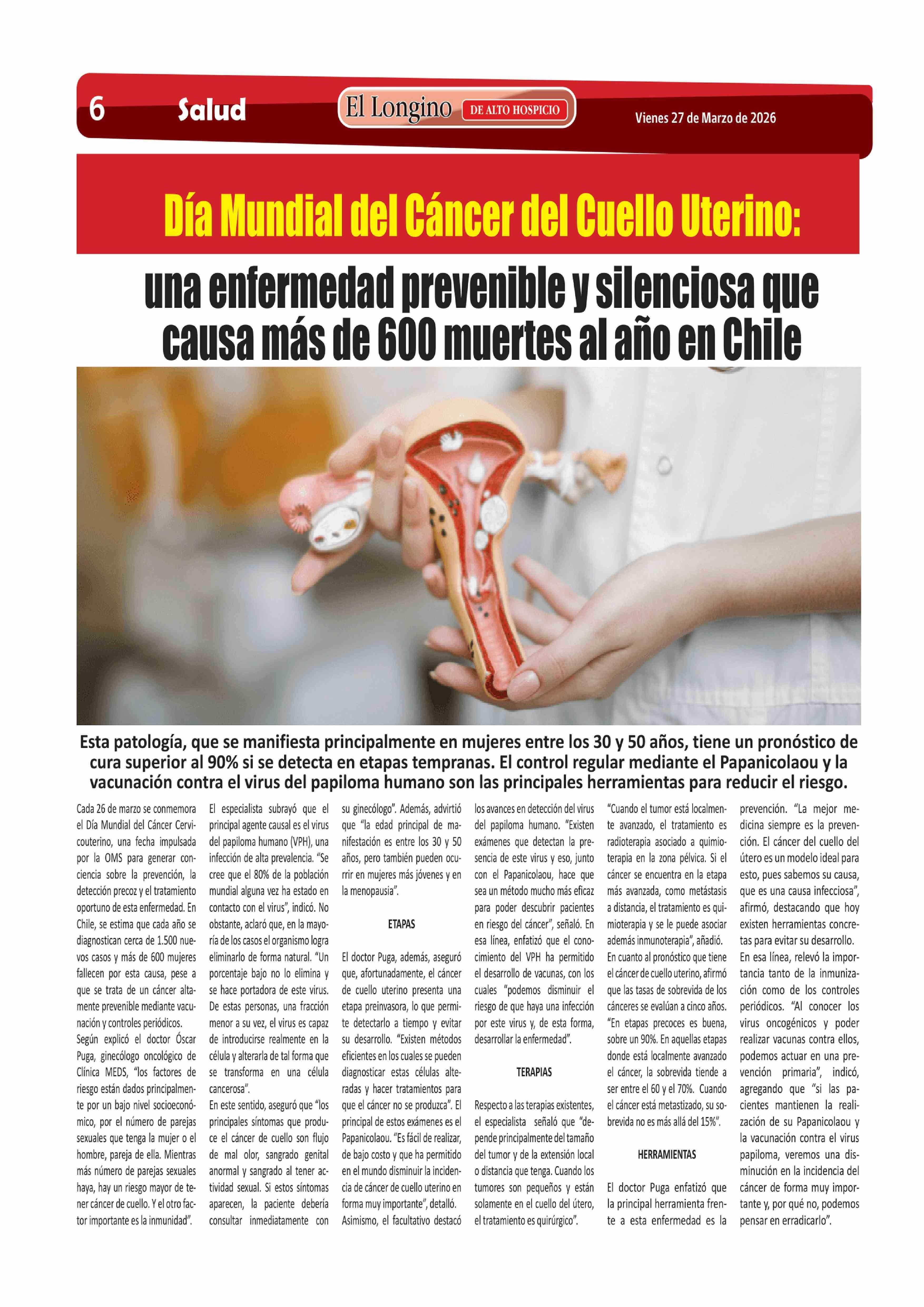 Título: Día Mundial del Cáncer del Cuello Uterino: una enfermedad prevenible y silenciosa que causa más de 600 muertes al año en Chile