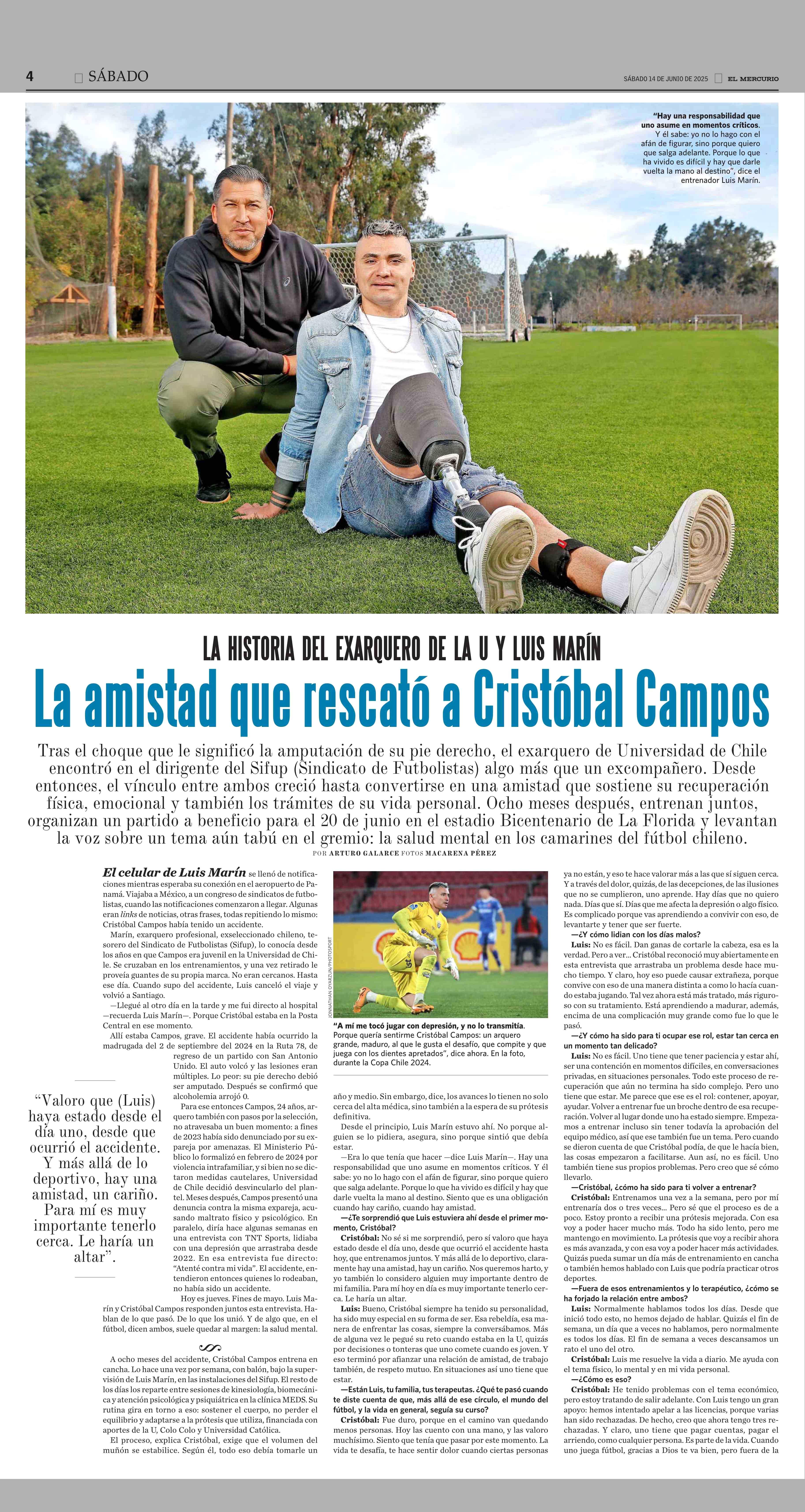 LA HISTORIA DEL EXARQUERO DE LA U Y LUIS MARÍN La amistad que rescató a Cristóbal Campos 14-06-2025 El Mercurio |