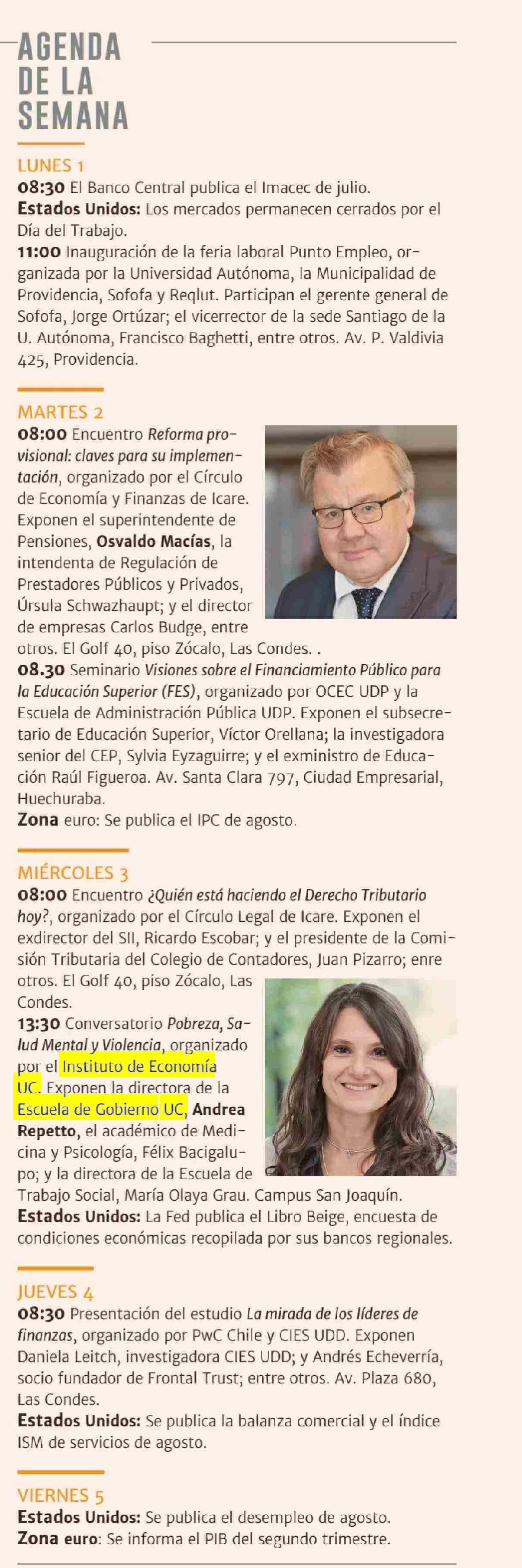 AGENDA DE LA SEMANA 01-09-2025 Diario Financiero |