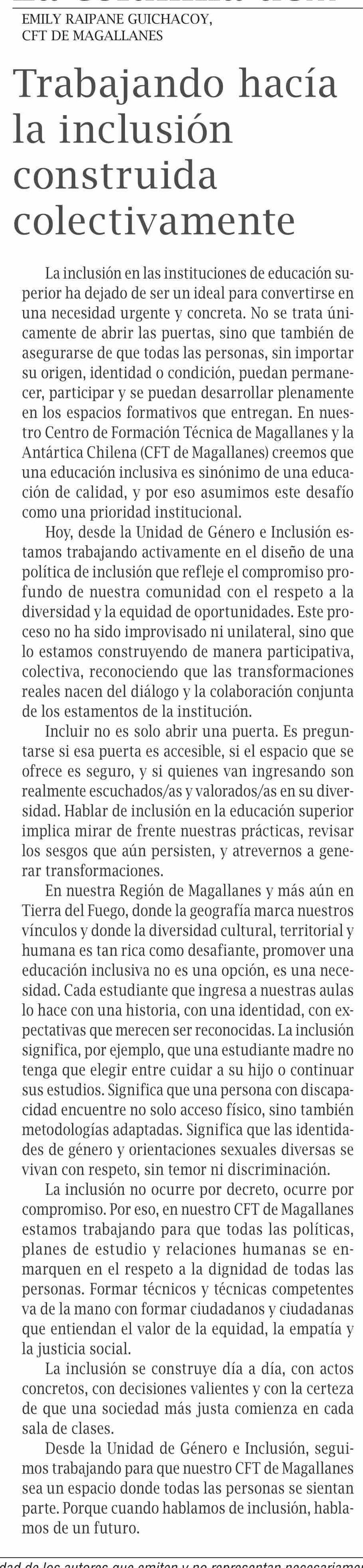 Columnas de Opinión: Trabajando hacía la inclusión construida colectivamente 28-05-2025 El Pingüino |