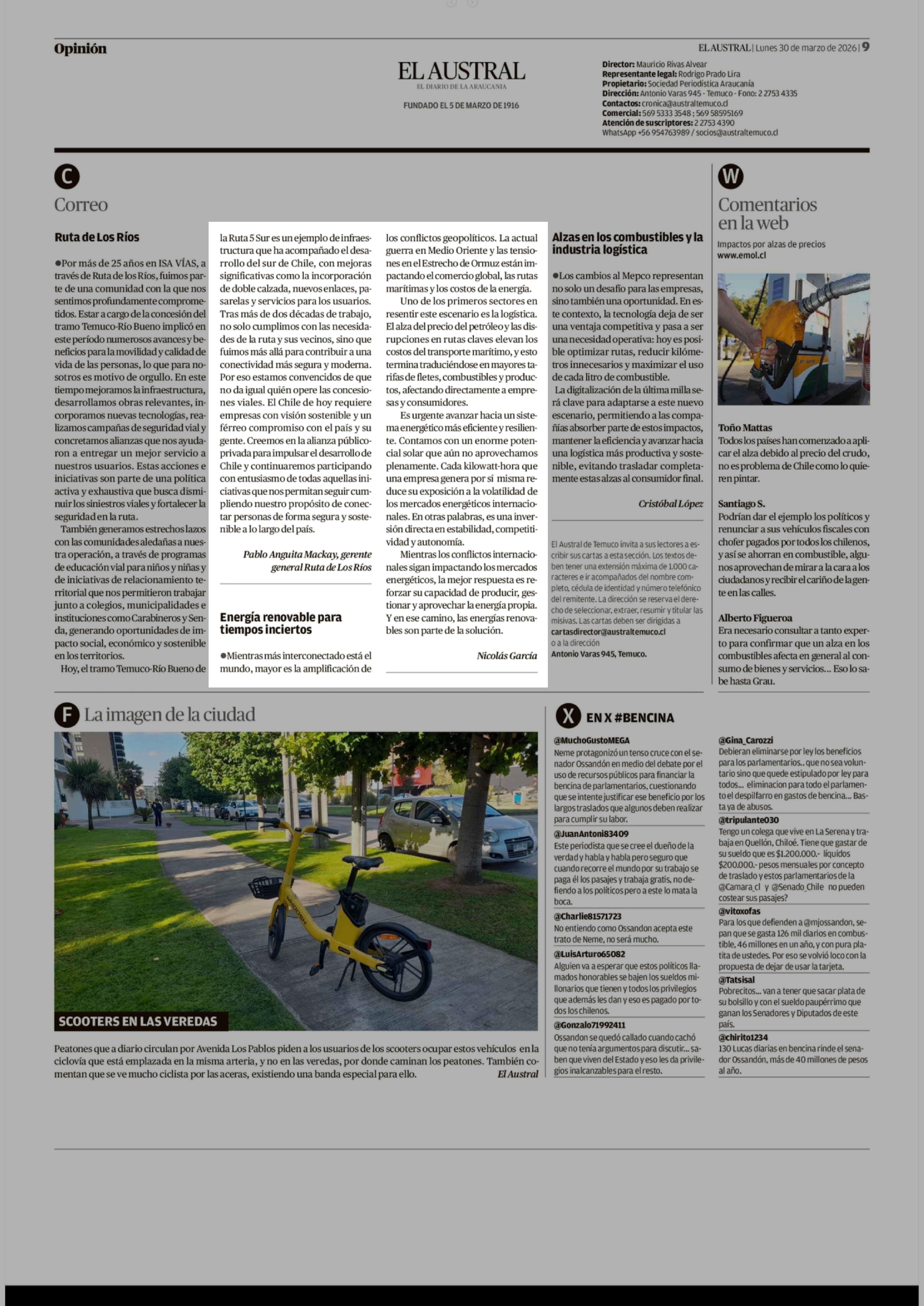 Fuente: El Austral de la Araucanía (El Austral de la Araucanía) Página(s): 9