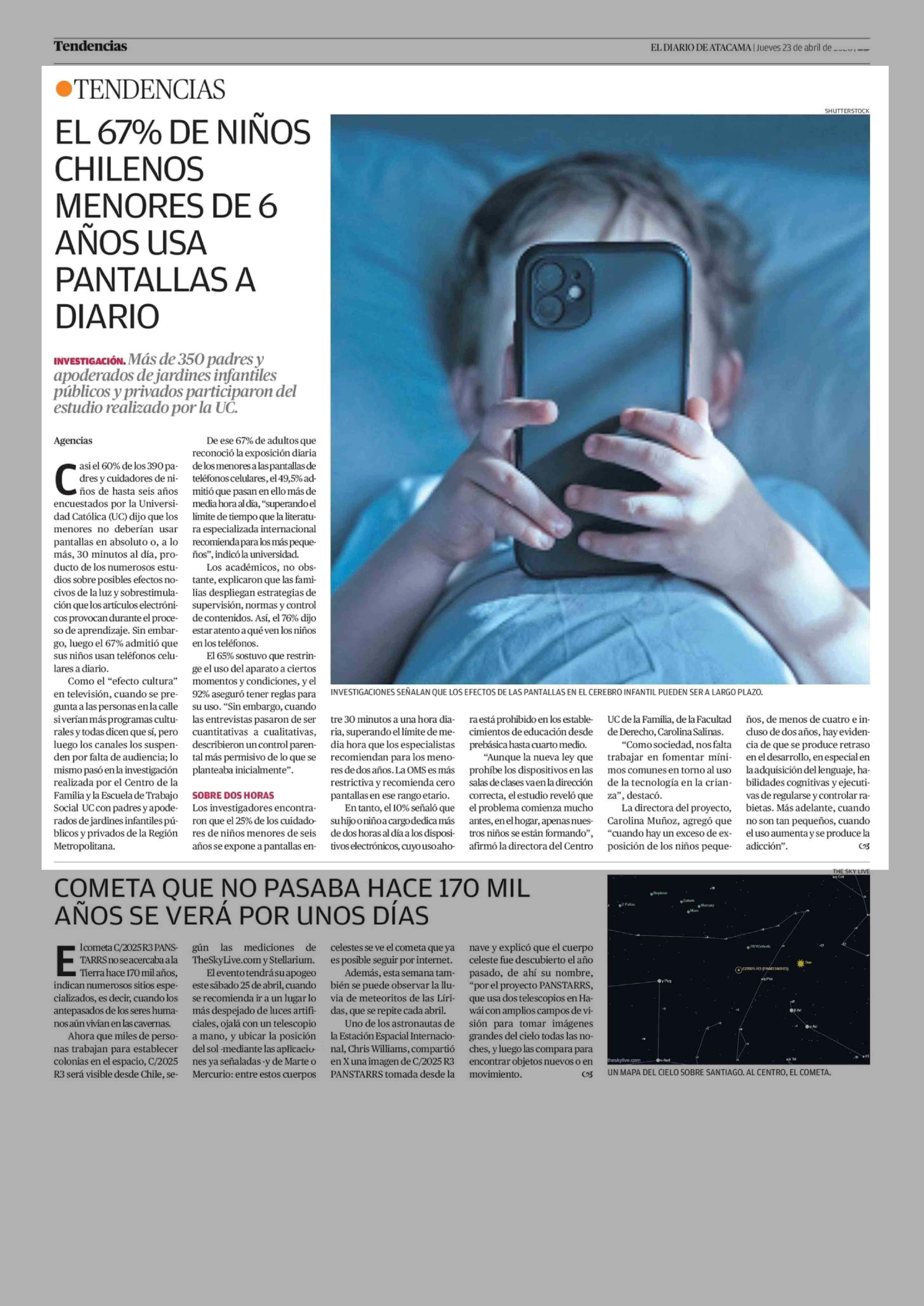 EL 67% DE NIÑOS CHILENOS MENORES DE 6 AÑOS USA PANTALLAS A DIARIO 23-04-2026 El Diario de Atacama |