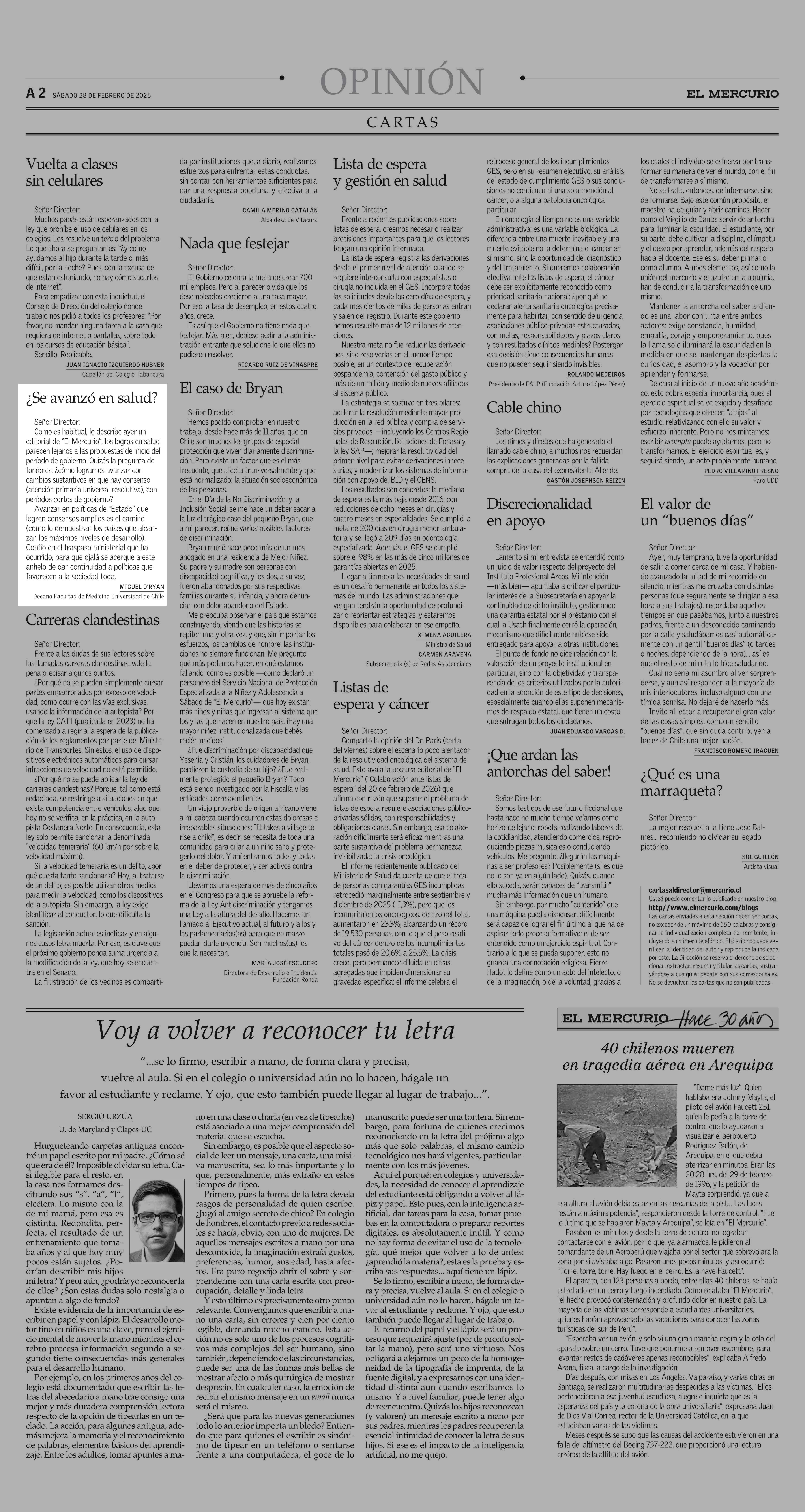 Cartas: ¿Se avanzó en salud? 28-02-2026 El Mercurio |
