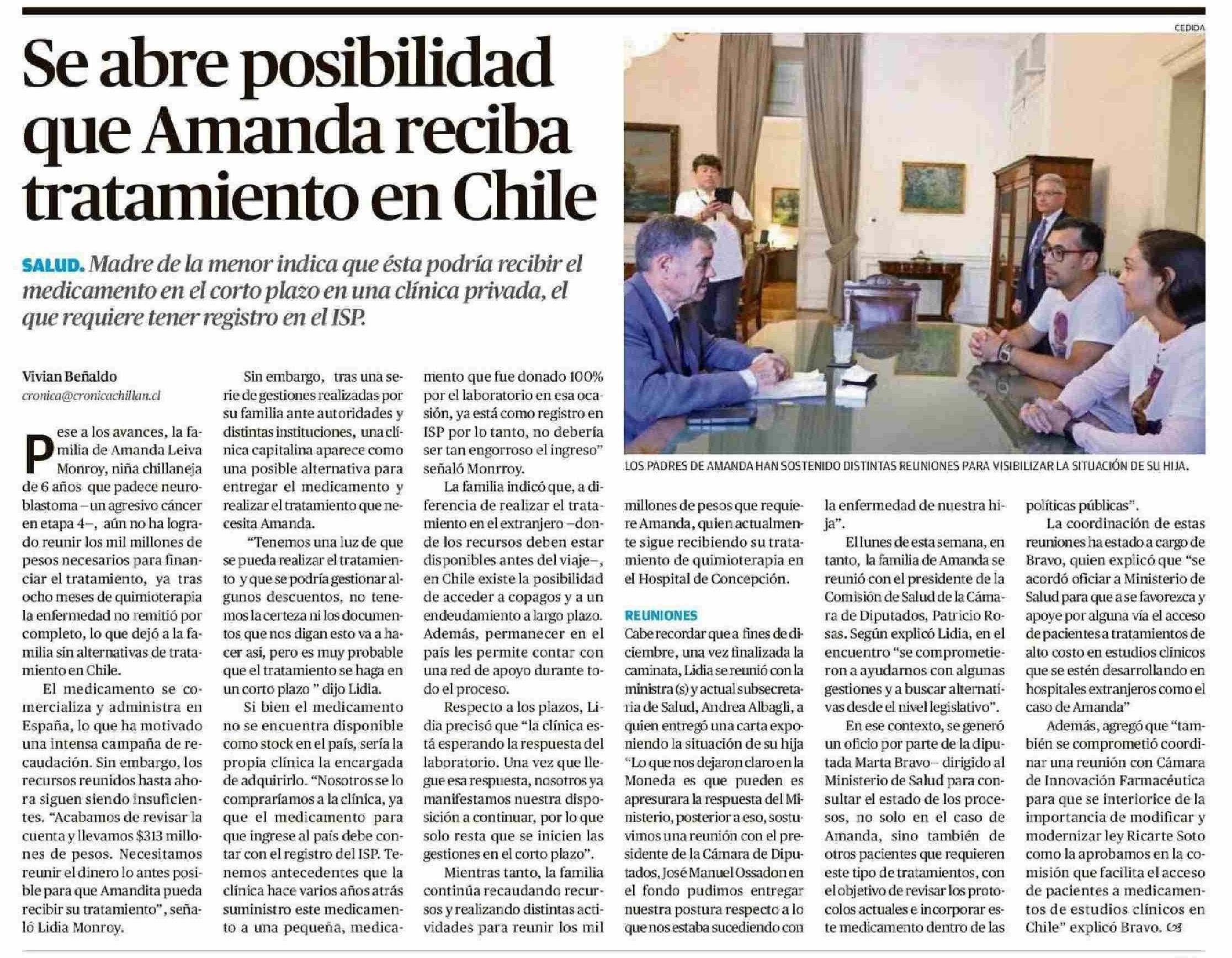 Título: Se abre posibilidad que Amanda reciba tratamiento en Chile