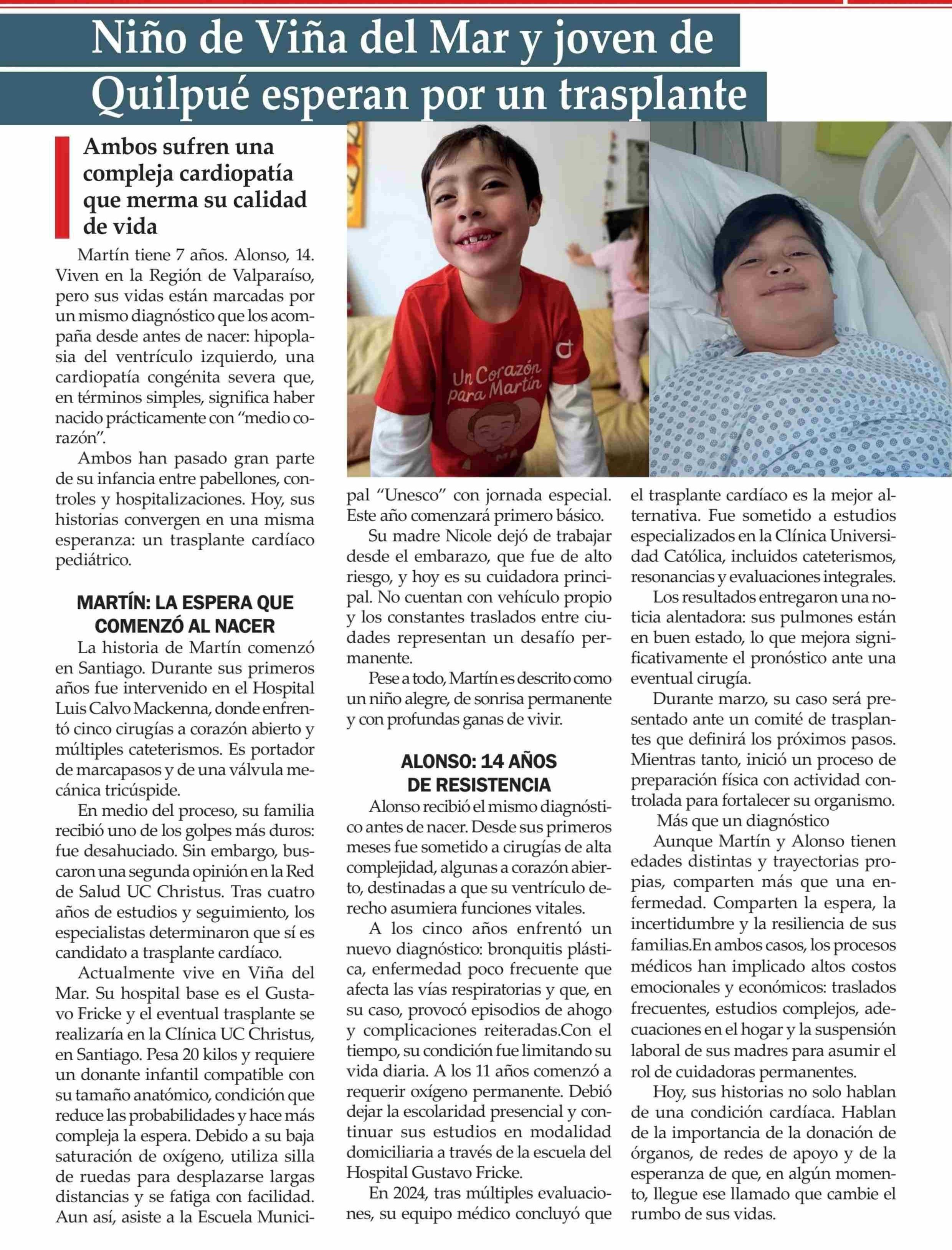 | Título: | Niño de Viña del Mar y joven de -Quilpué esperan por un trasplante |