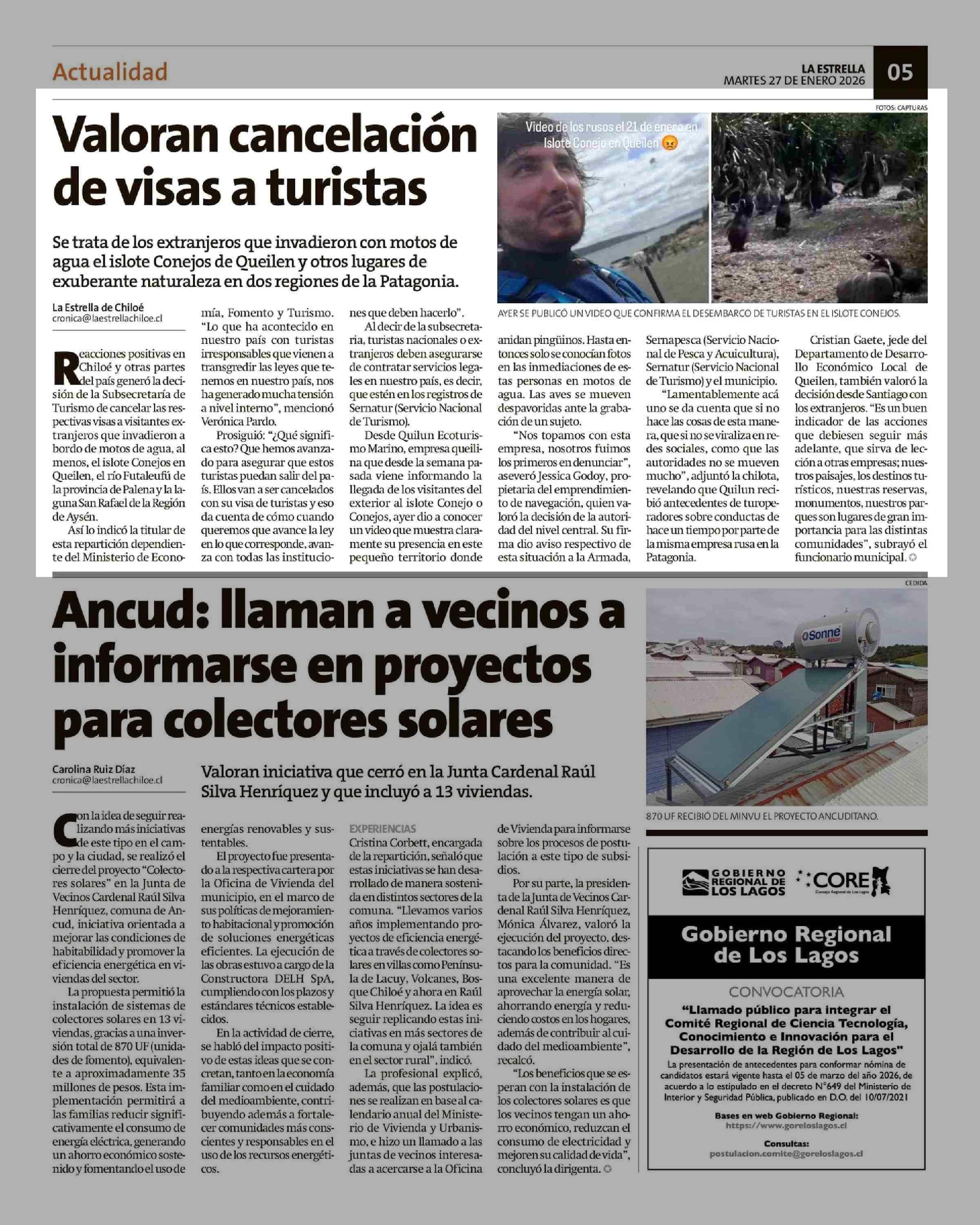 Valoran cancelación de visas a turistas 27-01-2026 La Estrella de Chiloé |