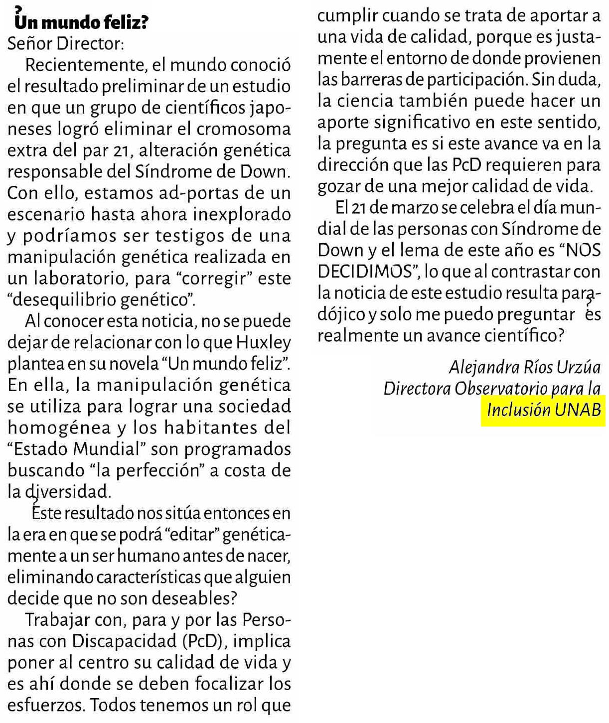 | Título: | CARTAS: Un mundo feliz? |