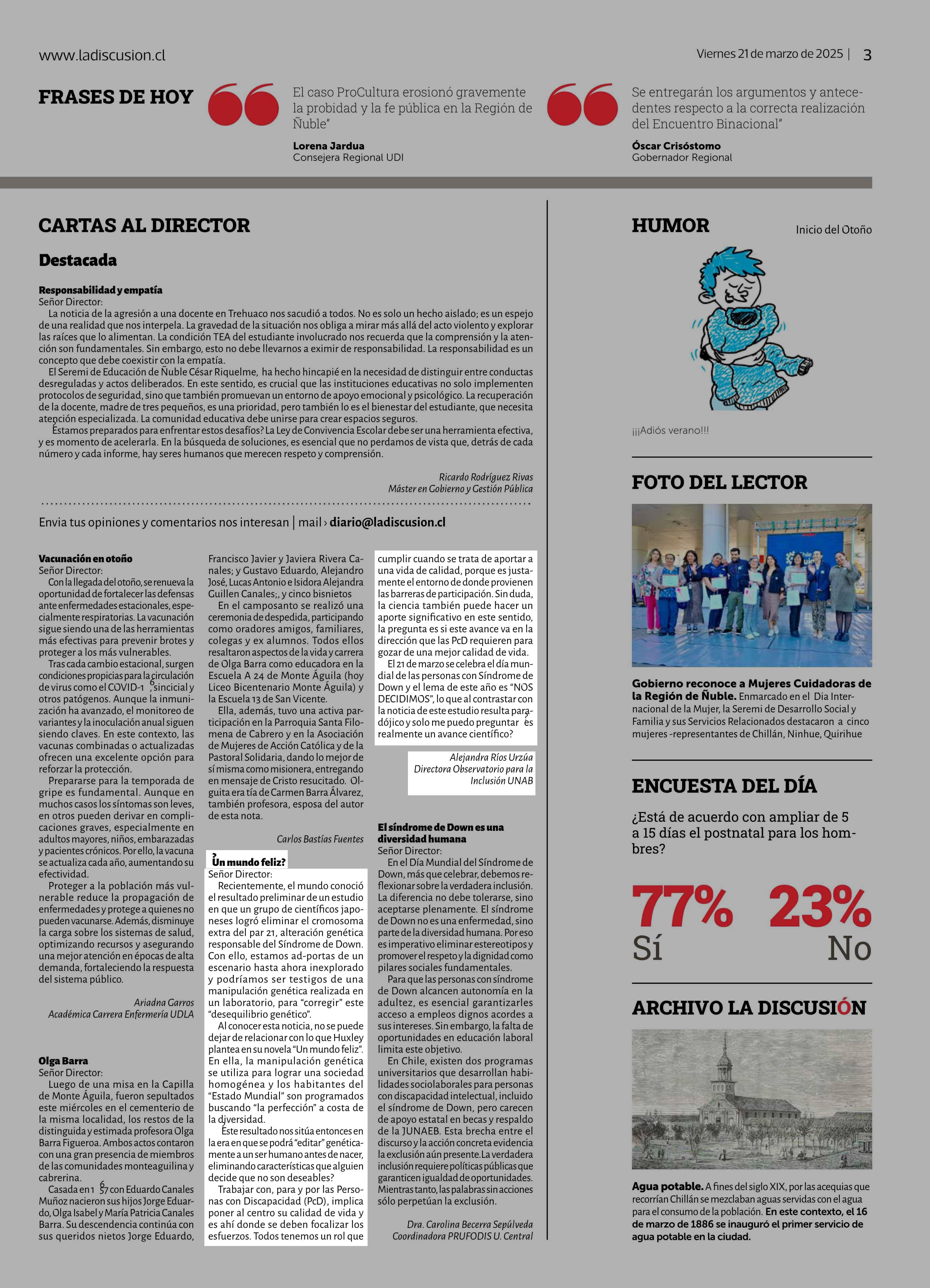 CARTAS: Un mundo feliz? 21-03-2025 La Discusión |