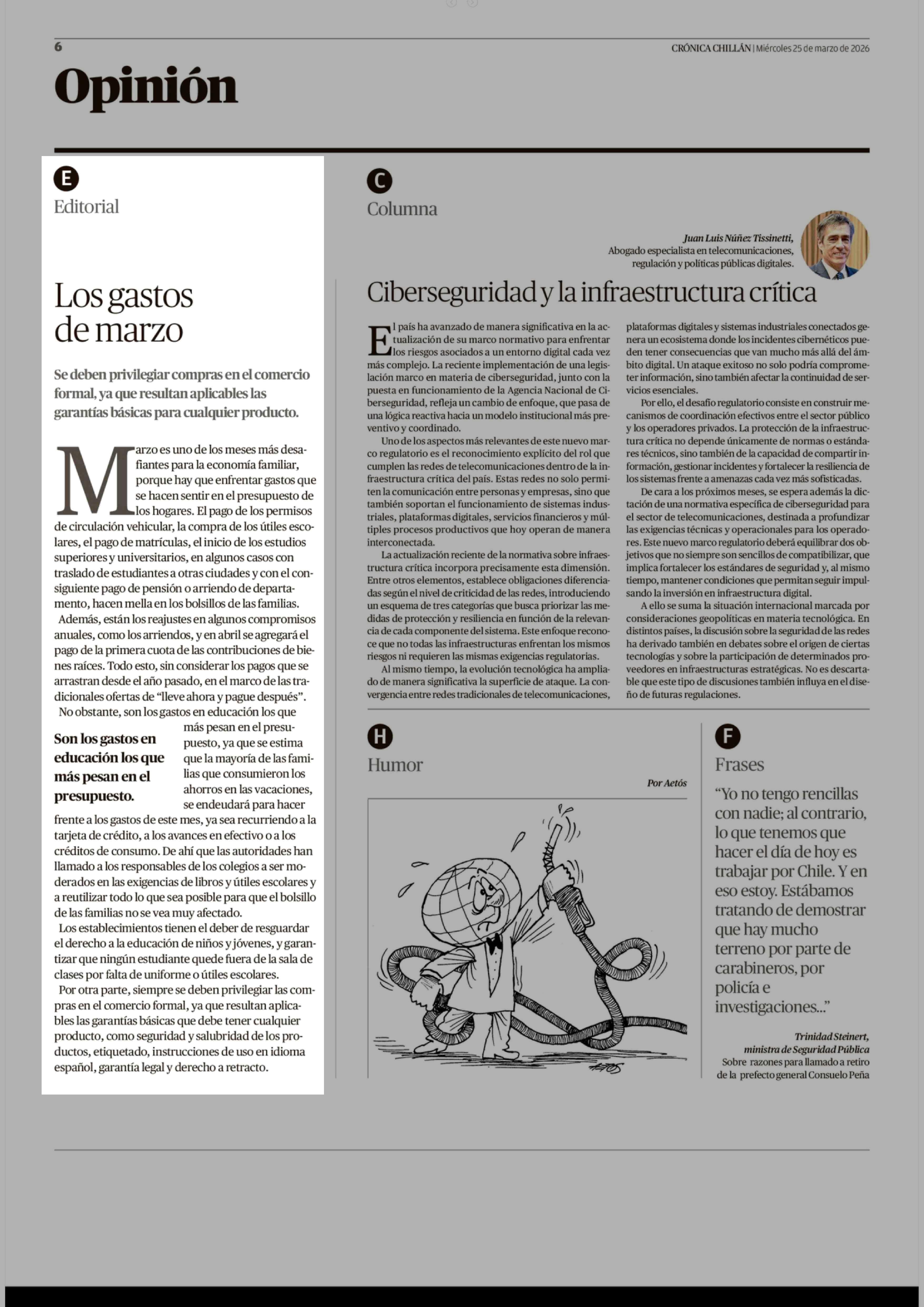Editorial: Los gastos de marzo 25-03-2026 Crónica de Chillán |