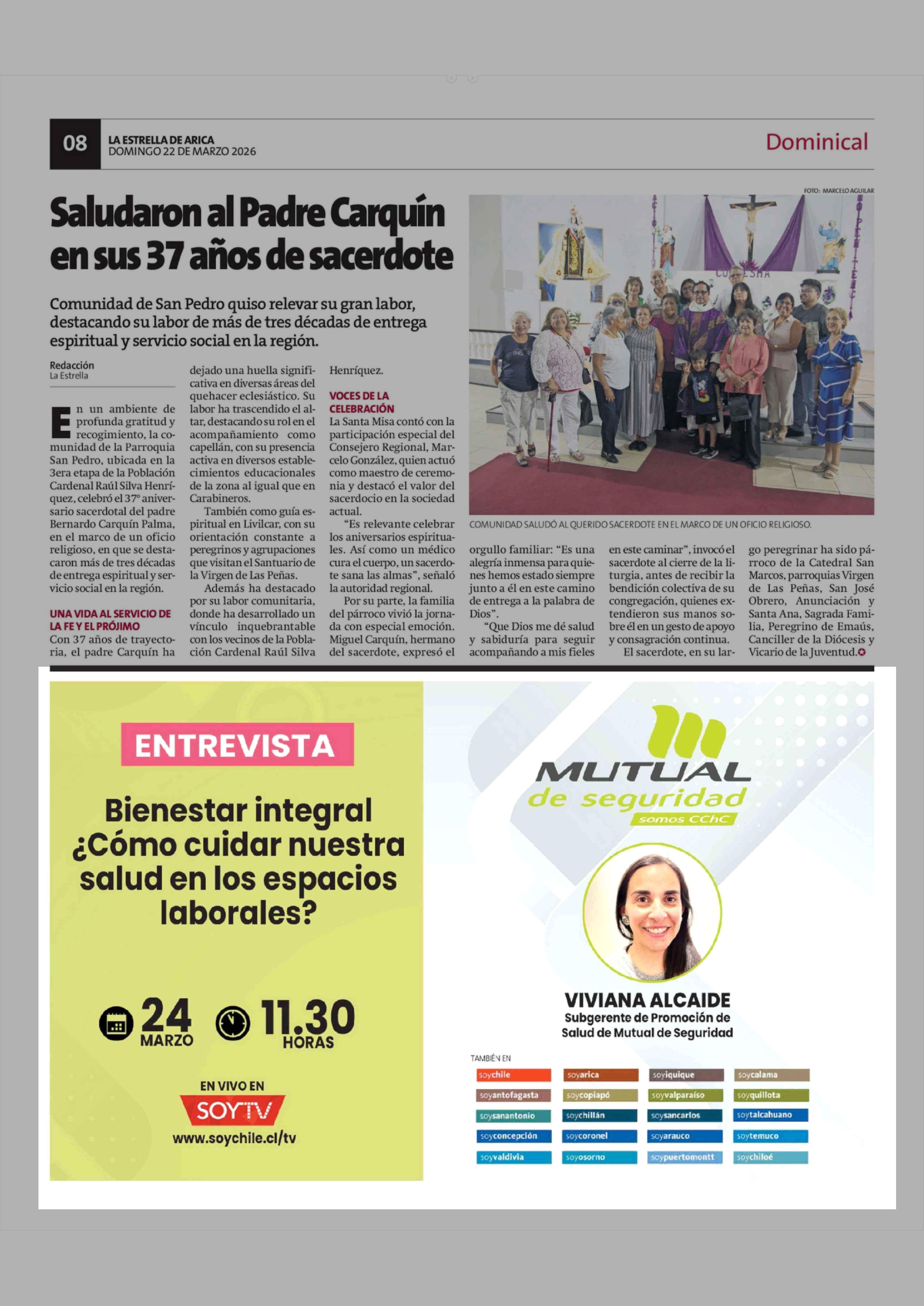 Aviso Publicitario: MUTUAL DE SEGURIDAD 22-03-2026 La Estrella de Arica |
