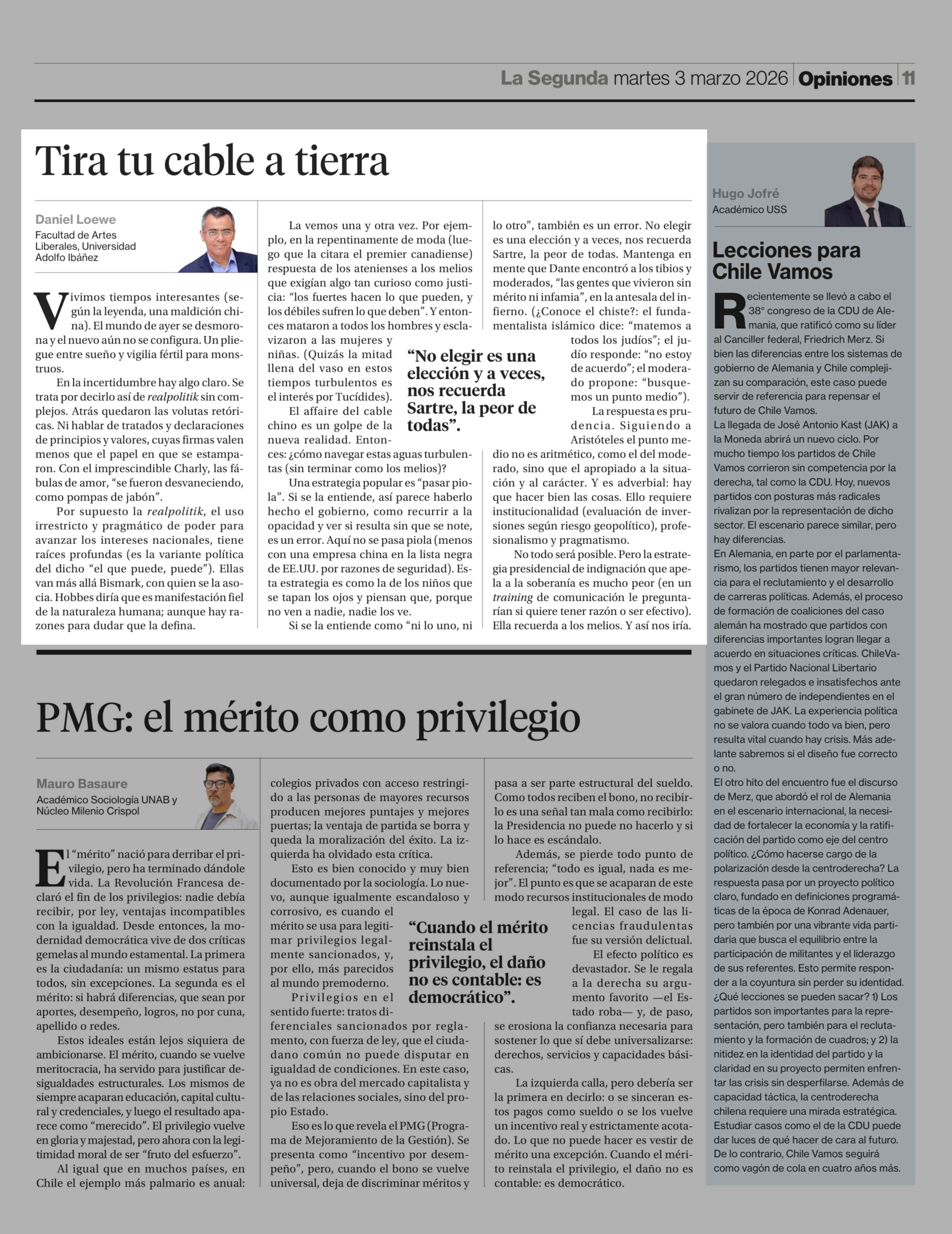 Columnas de Opinión: Tira tu cable a tierra 03-03-2026 La Segunda |