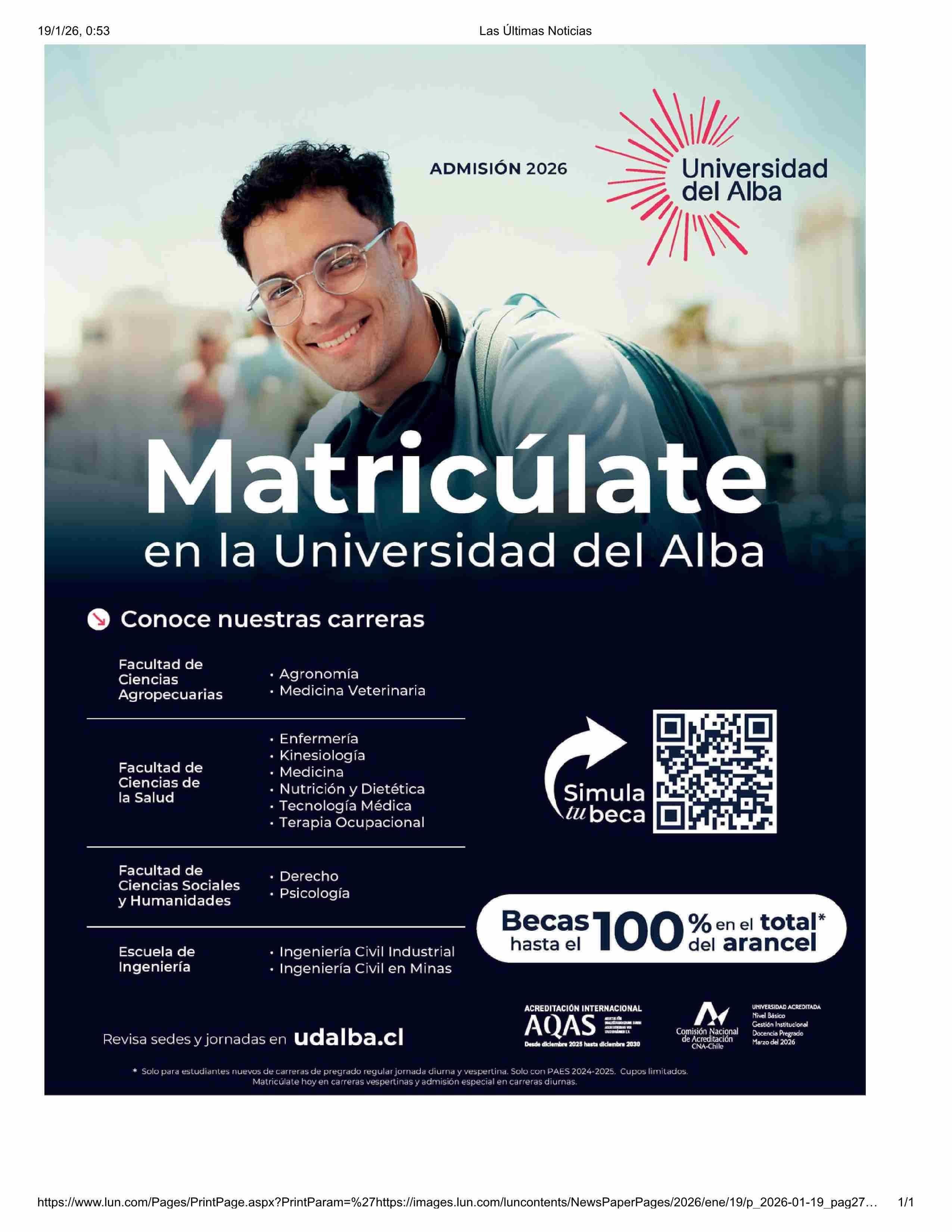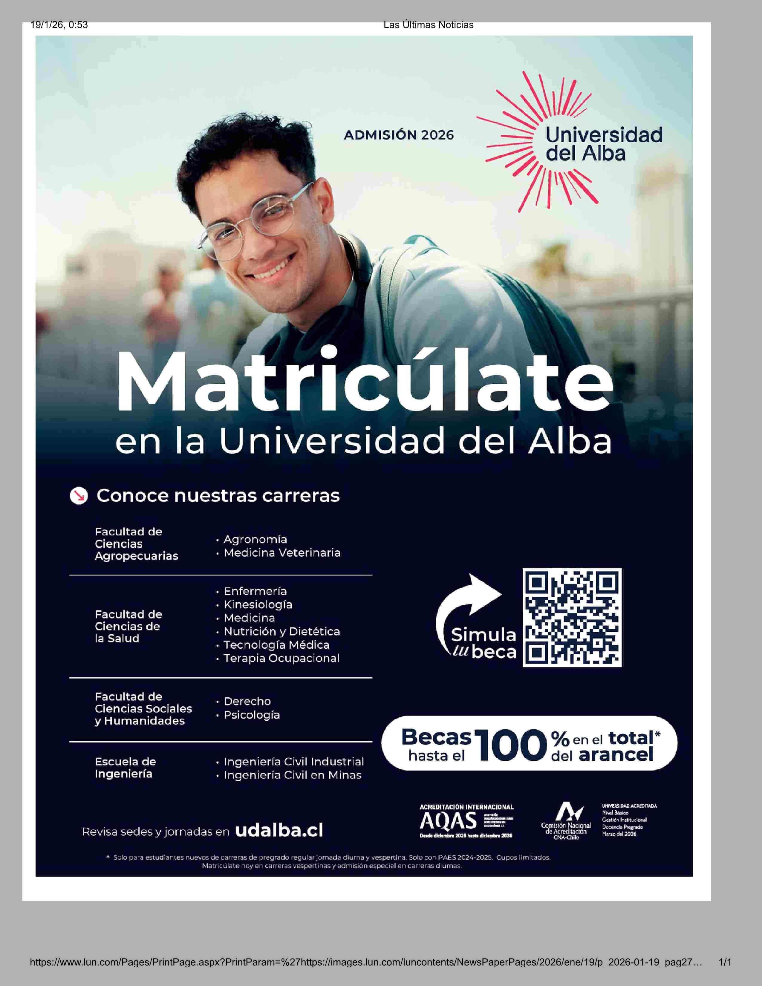 Aviso Universidad: Universidad del Alba 19-01-2026 Las Últimas Noticias |