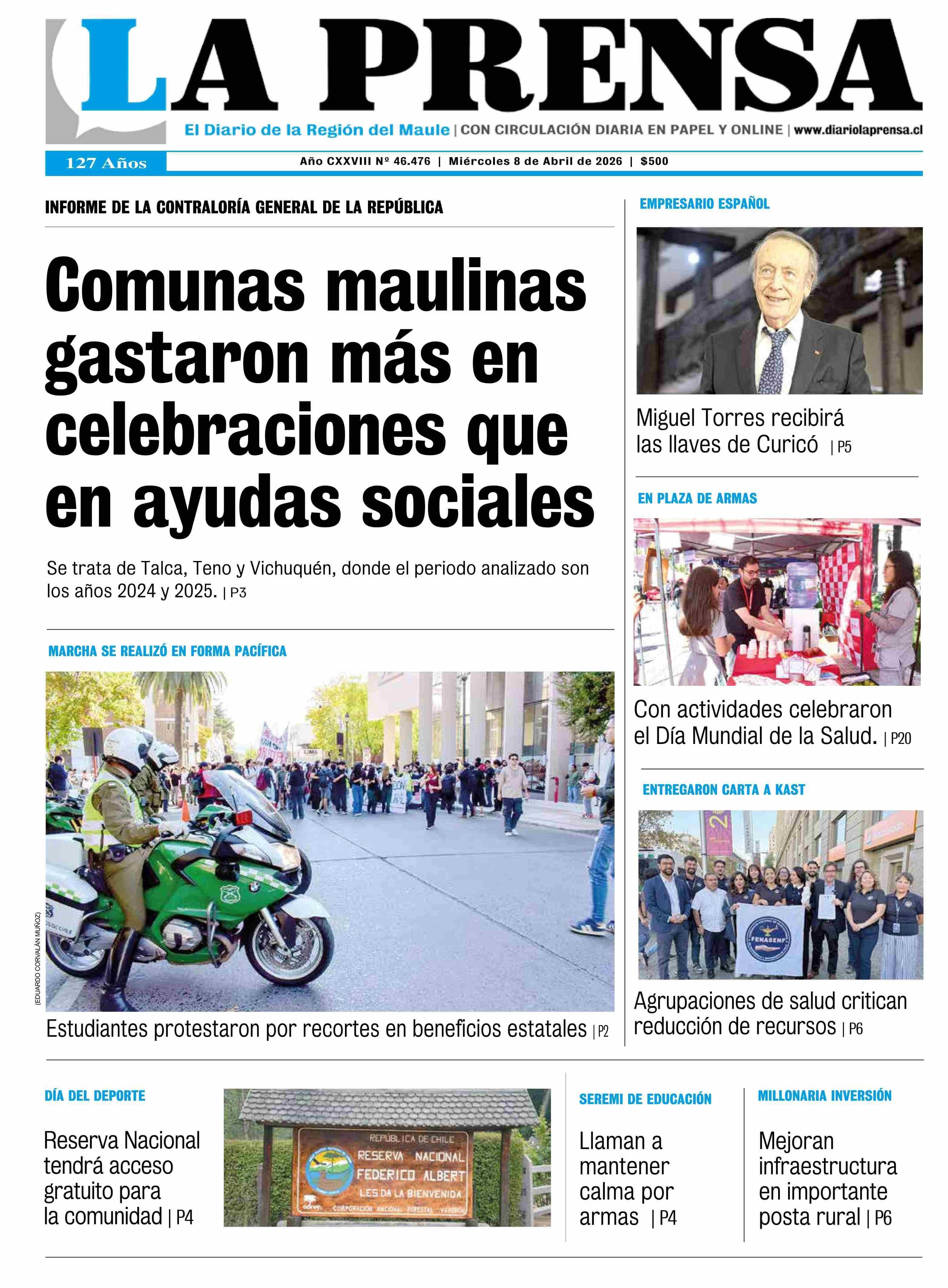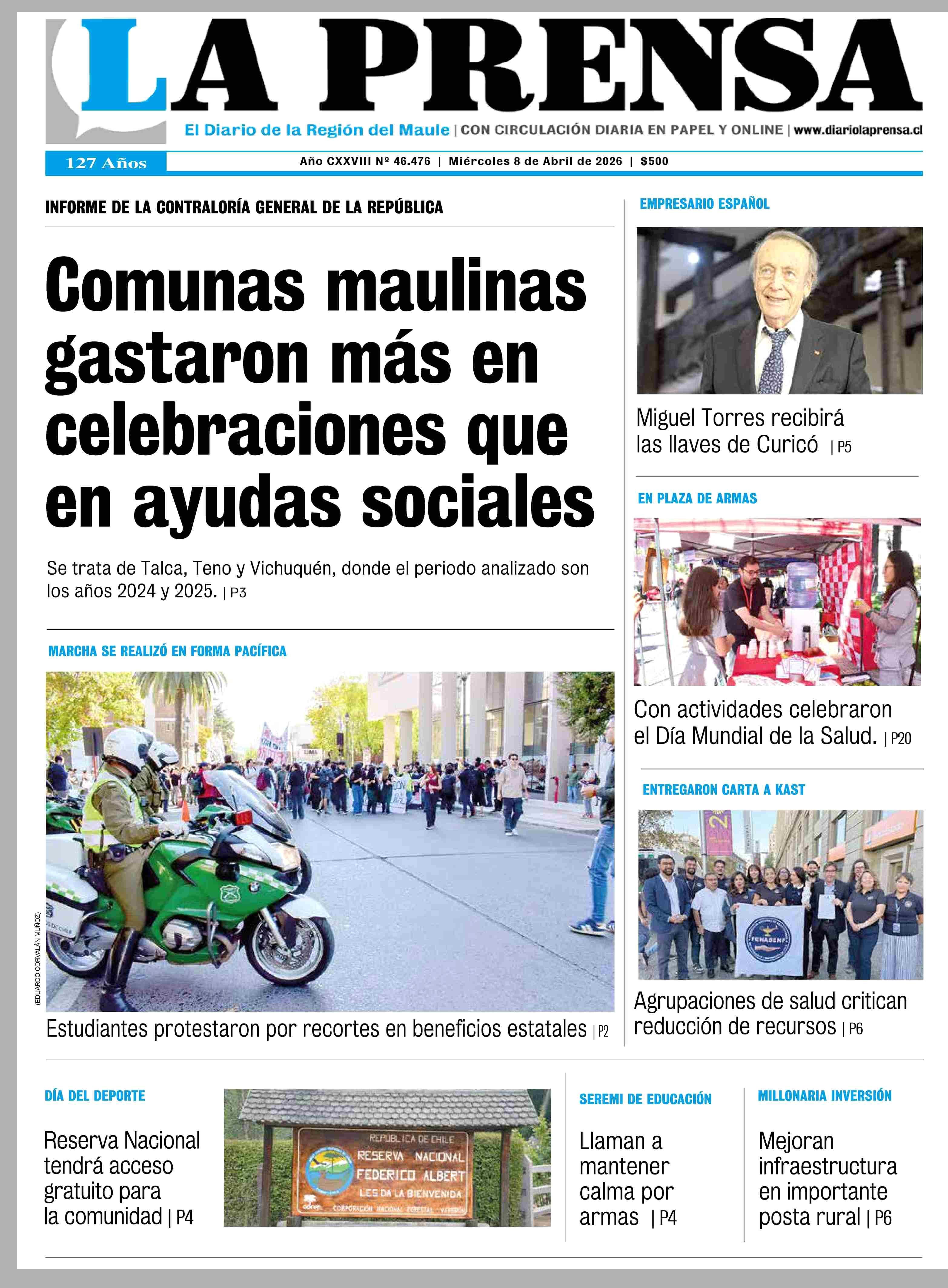 | Fecha: | 08-04-2026 | Sector: | Portada | Región: | Región del Maule |
