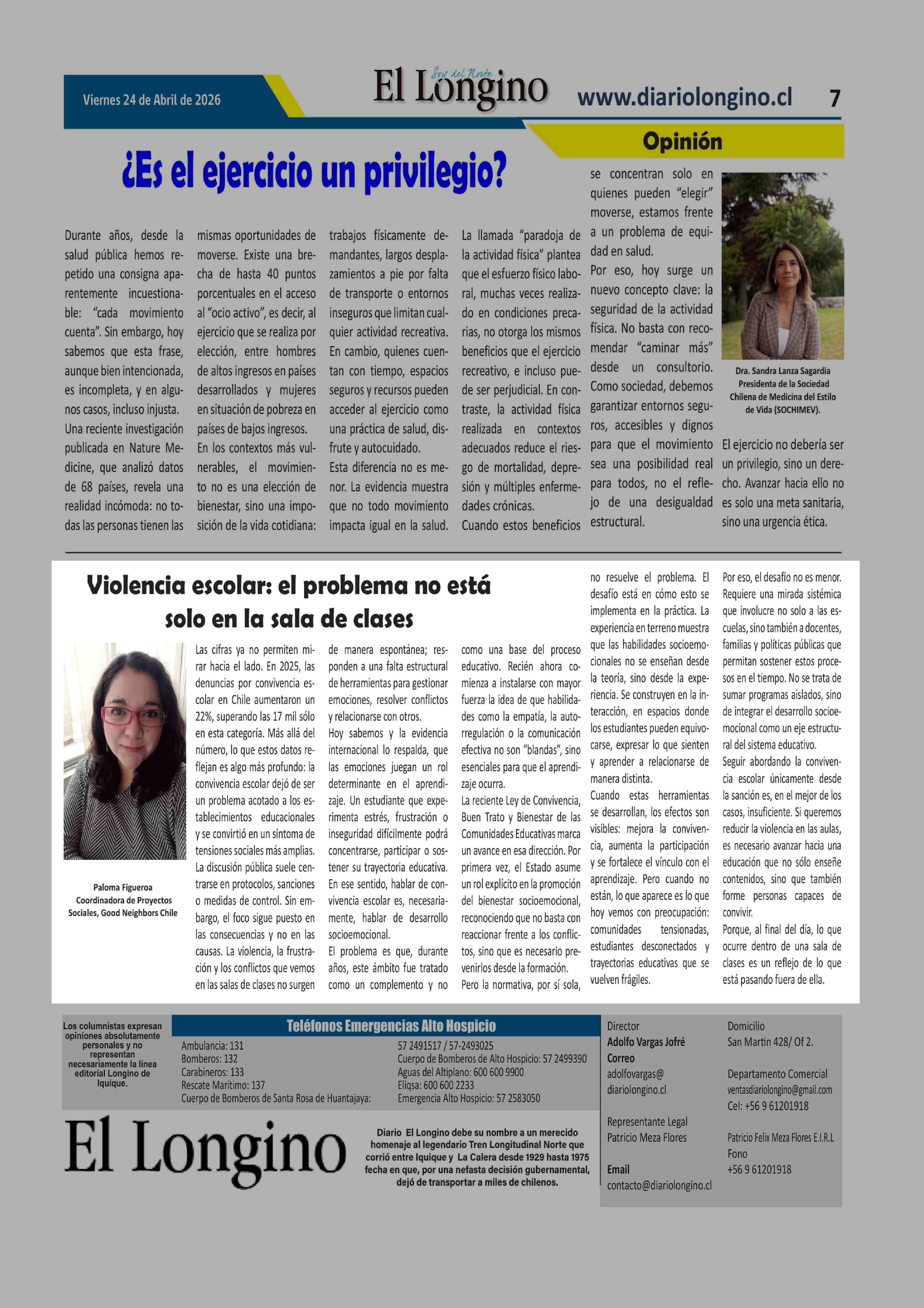 Columnas de Opinión: Violencia escolar: el problema no está solo en la sala de clases 24-04-2026 El Longino |