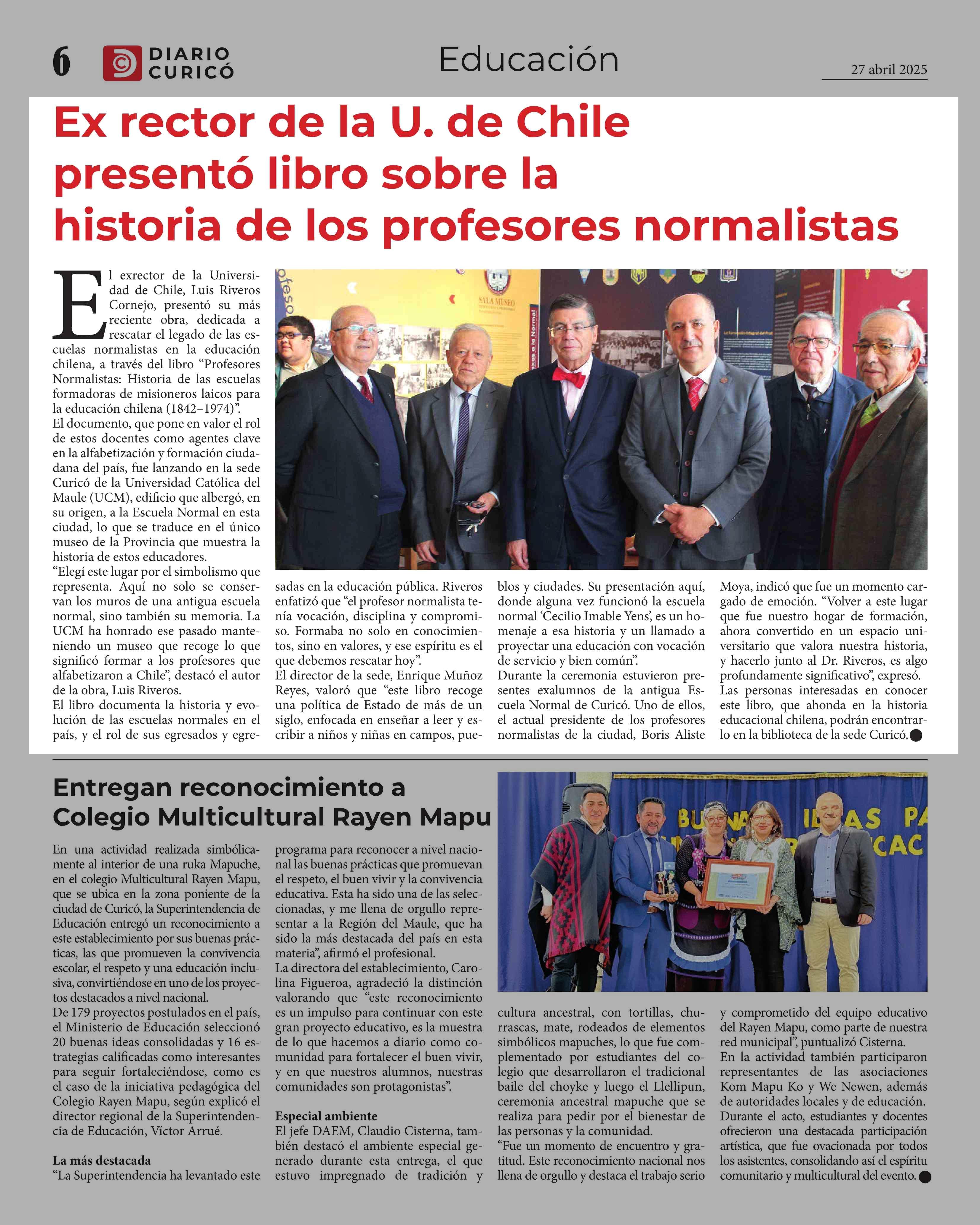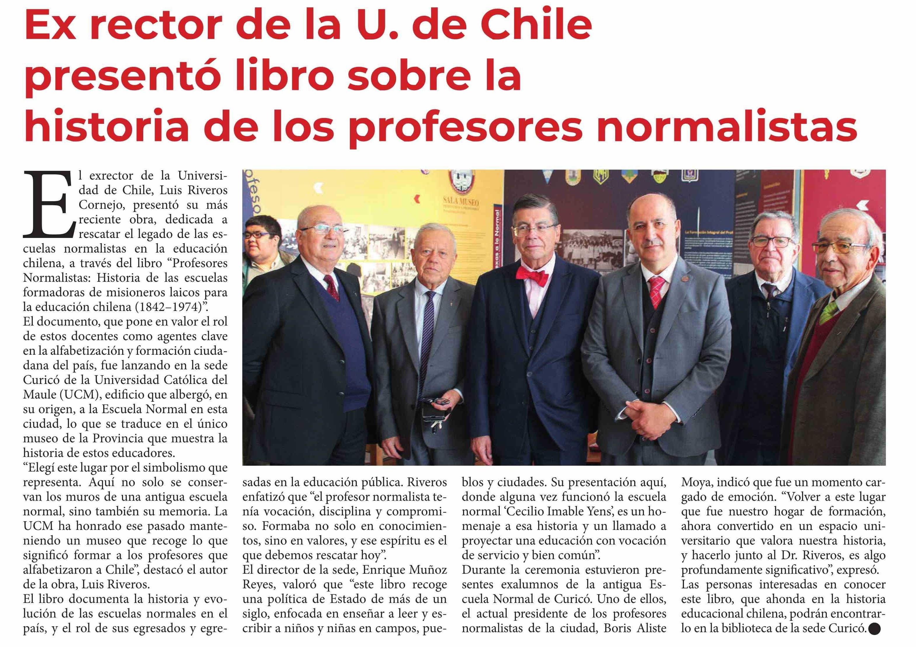 Ex rector de la U. de Chile presentó libro sobre la historia de los profesores normalistas 04-05-2025 Diario Talca |