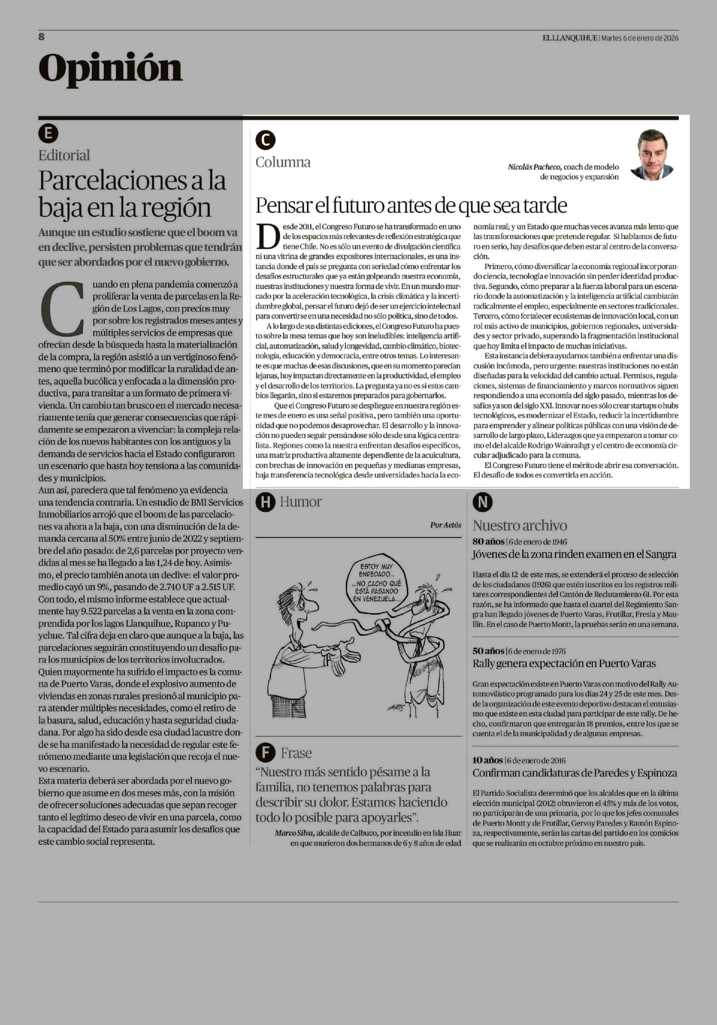 Columnas de Opinión: Pensar el futuro antes de que sea tarde 06-01-2026 El Llanquihue |
