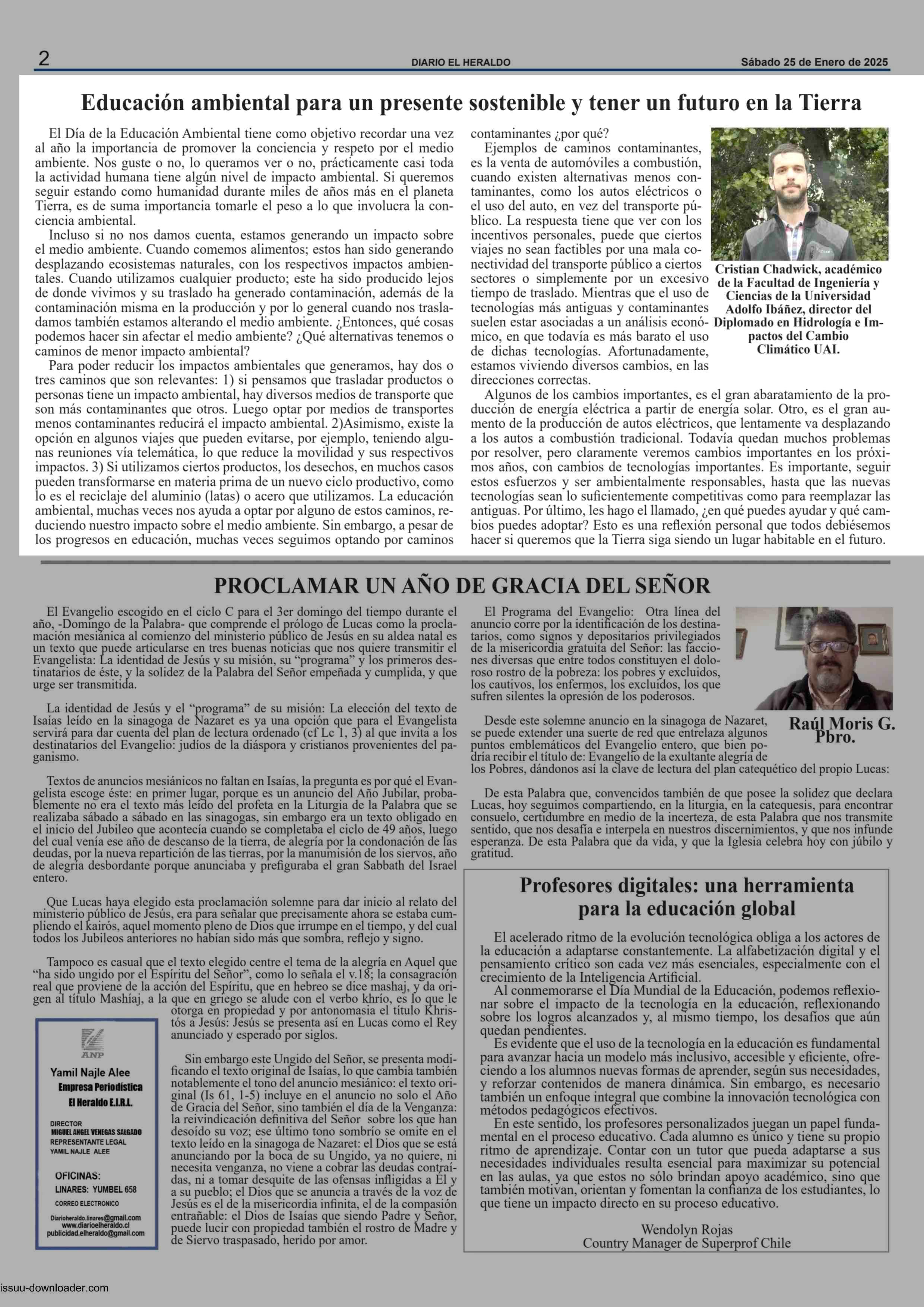 COLUMNAS DE OPINIÓN: Educación ambiental para un presente sostenible y tener un futuro en la Tierra 26-01-2025 El Heraldo |