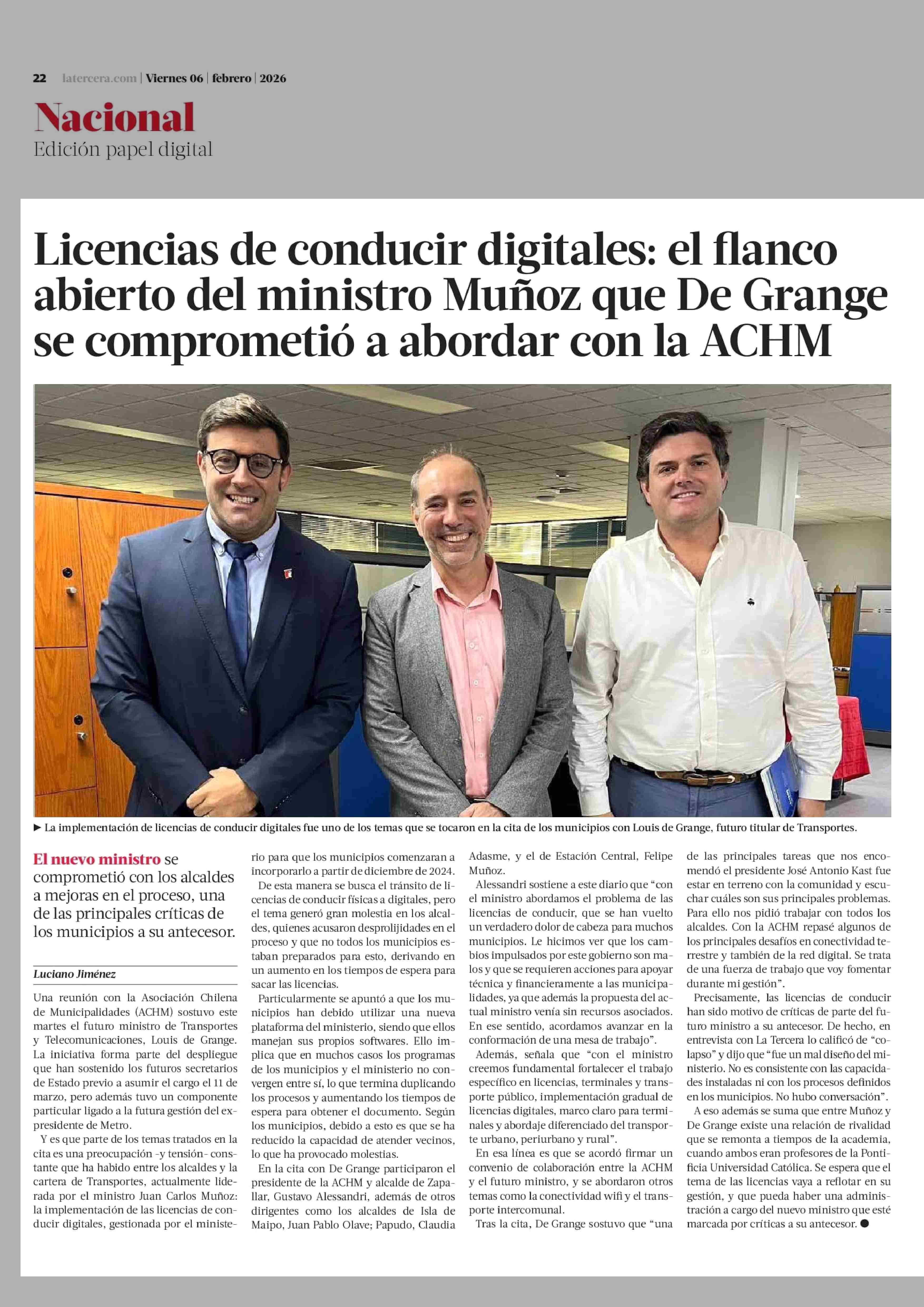 Título: Licencias de conducir digitales: el flanco abierto del ministro Muñoz que De Grange se comprometió a abordar con la ACHM