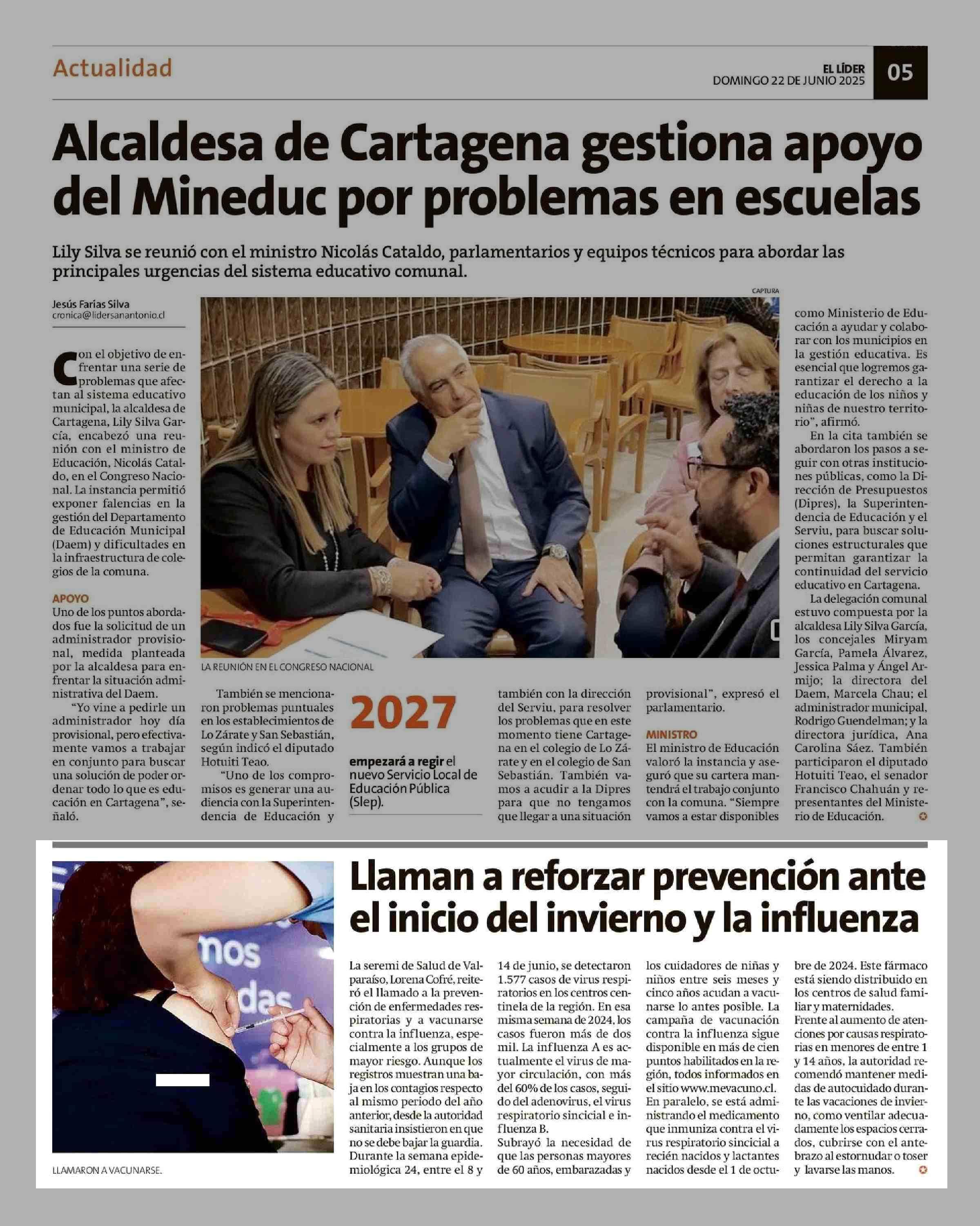 Llaman a reforzar prevención ante el inicio del invierno y la influenza 22-06-2025 El Líder |