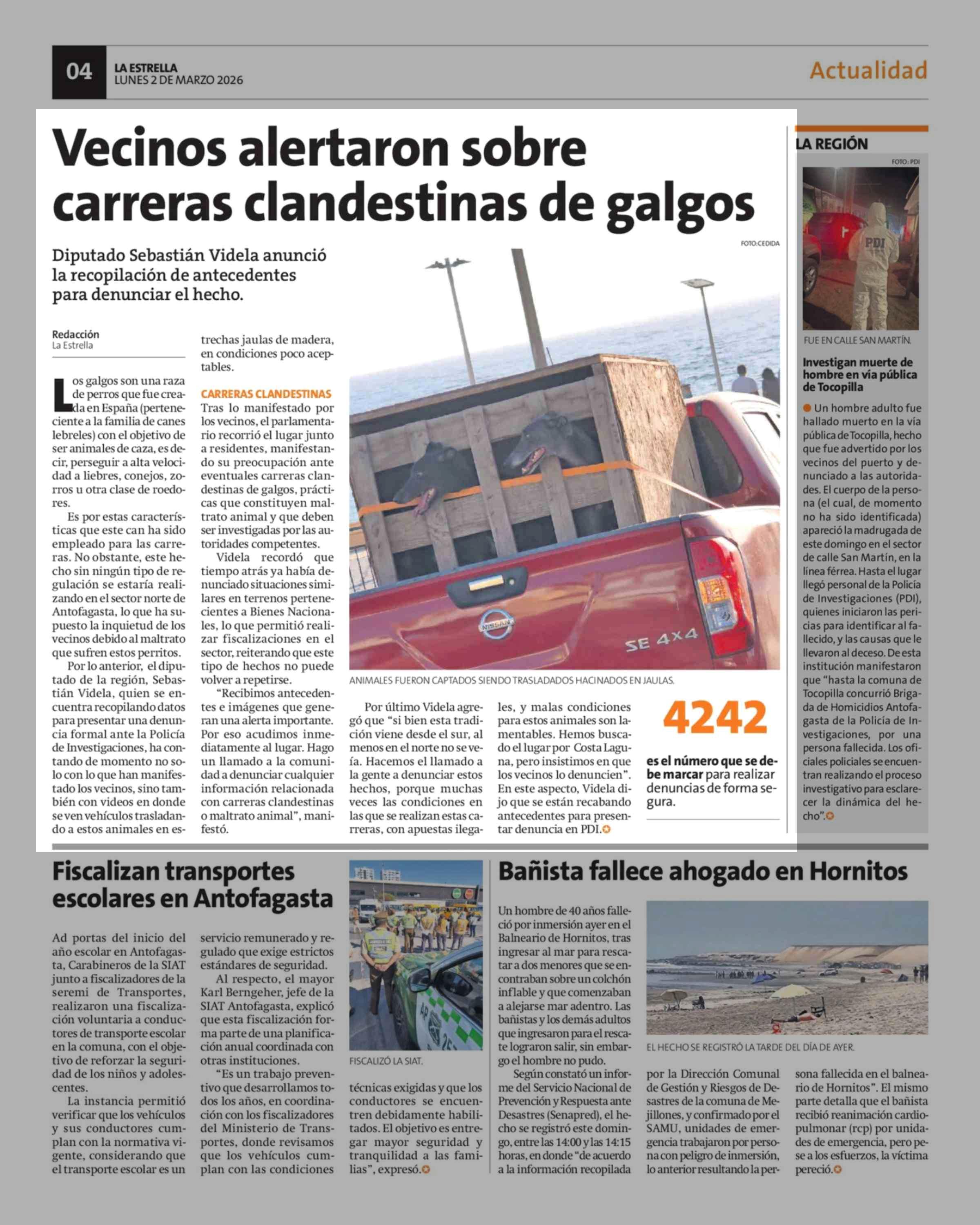 Vecinos alertaron sobre carreras clandestinas de galgos 02-03-2026 La Estrella de Antofagasta |