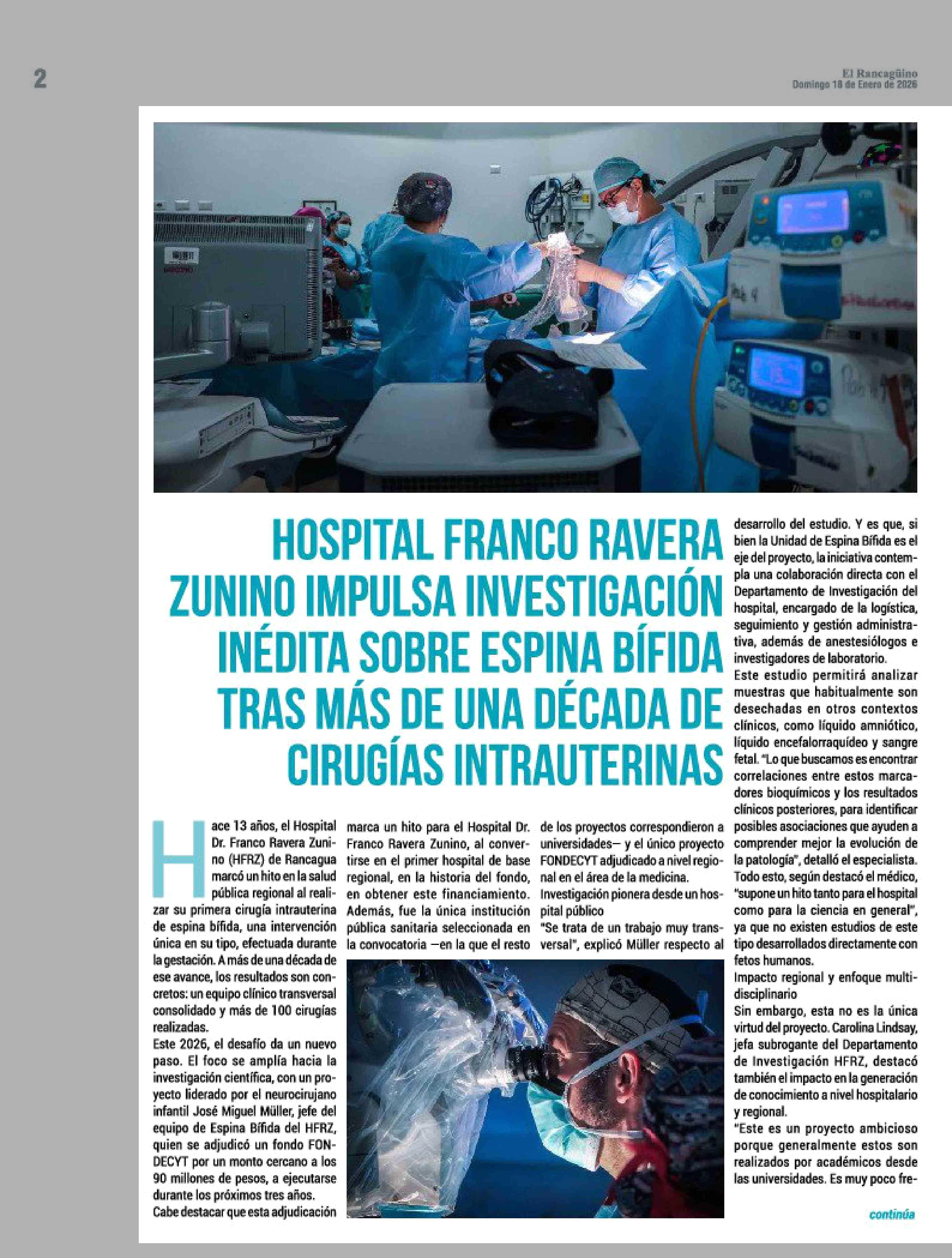 HOSPITAL FRANCO RAVERA ZUNINO IMPULSA INVESTIGACIÓN INÉDITA SOBRE ESPINA BÍFIDA TRAS MÁS DE UNA DÉCADA DE CIRUGÍAS INTRAUTERINAS 18-01-2026 El Rancagüino |