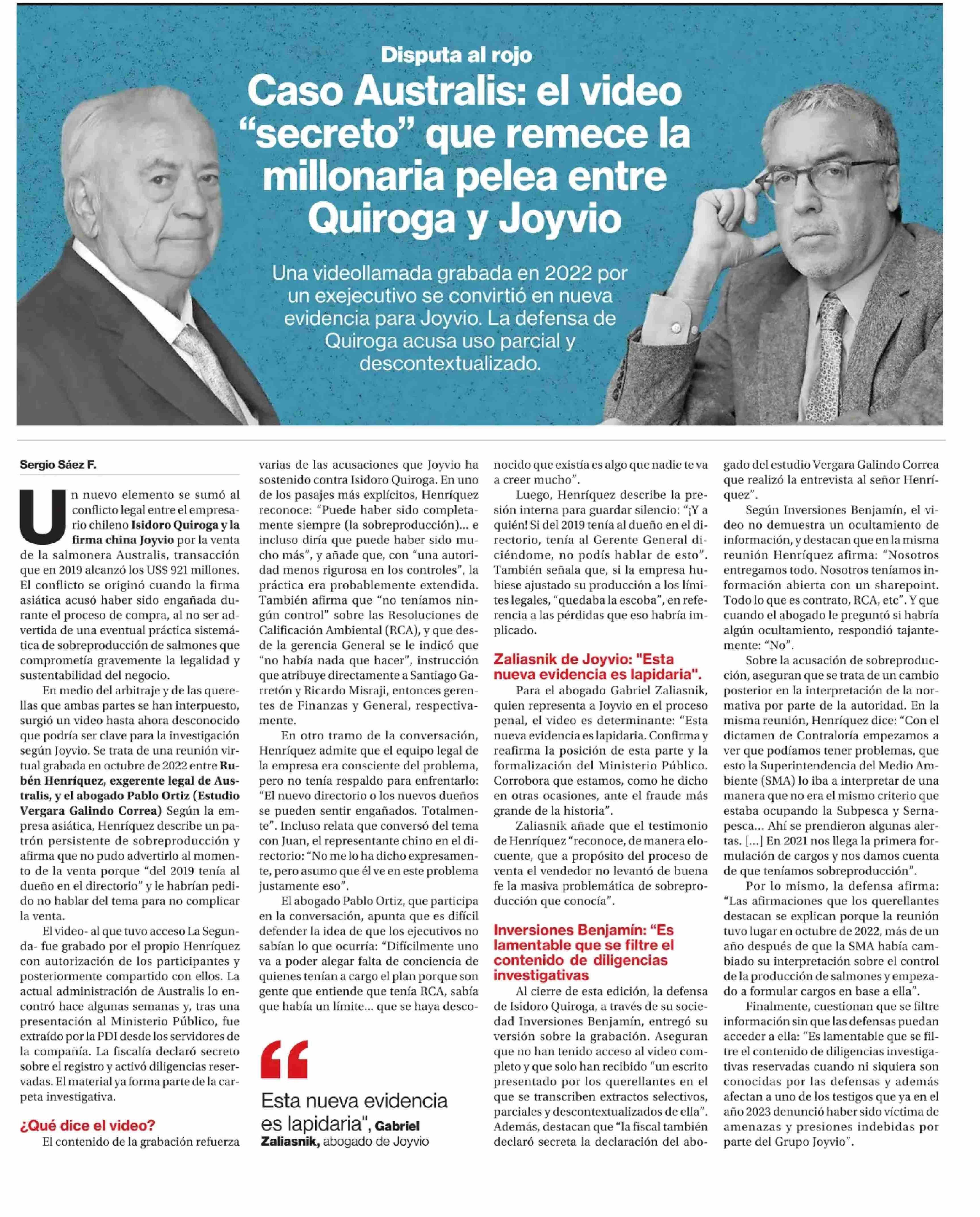 Caso Australis: el video “secreto” que remece la millonaria pelea entre Quiroga y Joyvio 04-06-2025 La Segunda |
