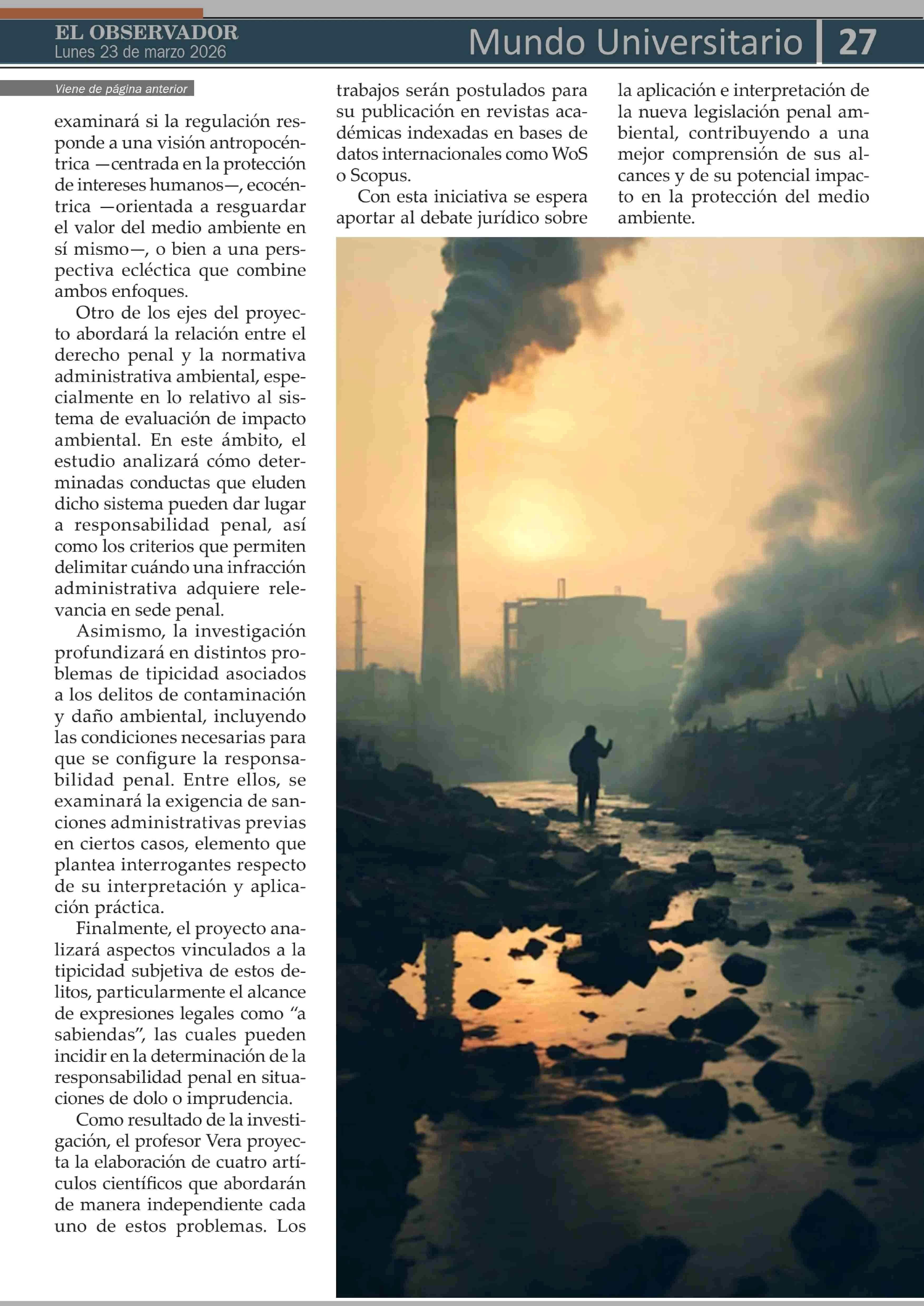 Proyecto PUCV ahondará en desafios juridicos de los nuevos delitos ambientales en Chile 23-03-2026 El Observador Vespertino |