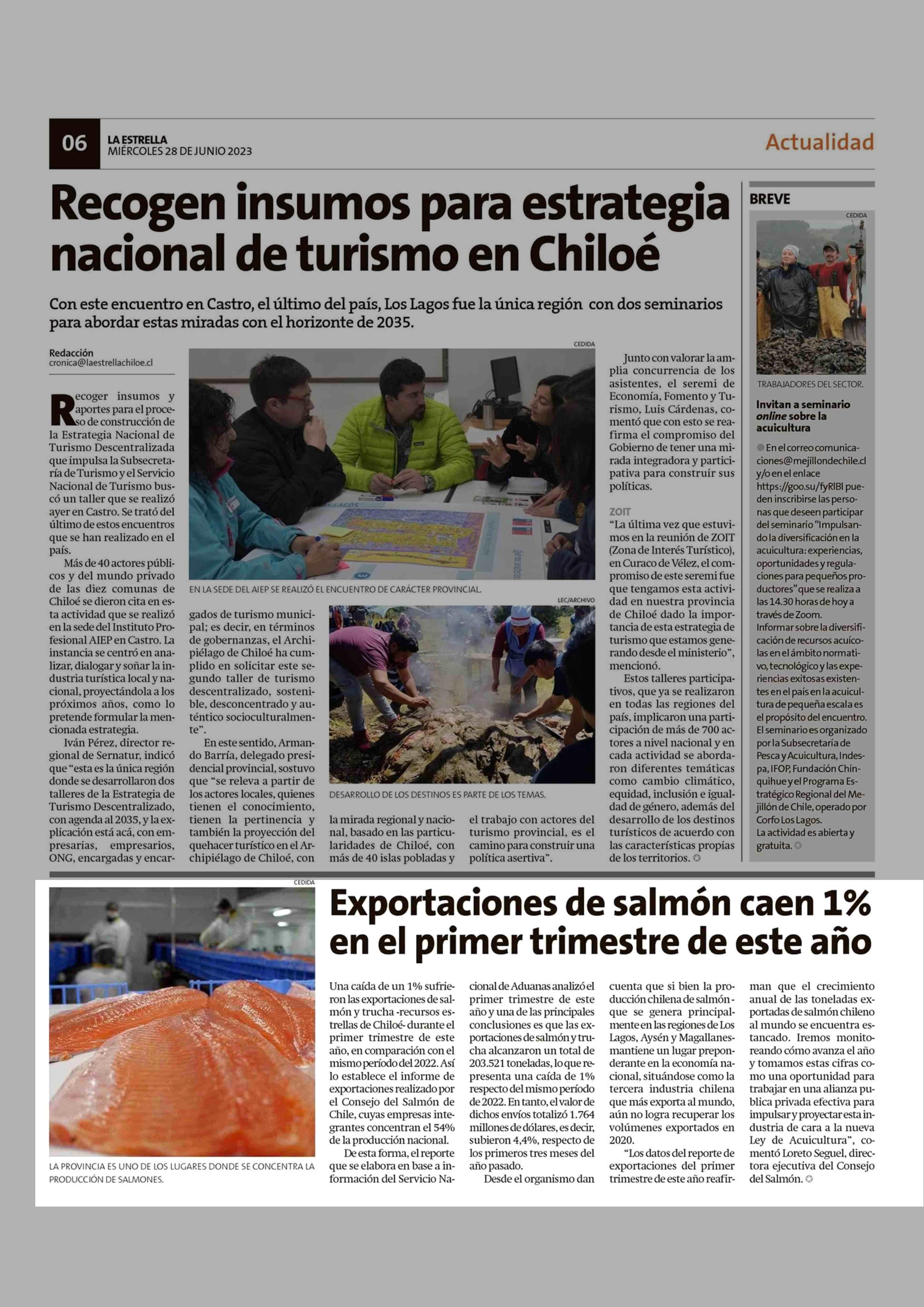 Exportaciones de salmón caen 1% en el primer trimestre de este año 28-06-2023 La Estrella de Chiloé |