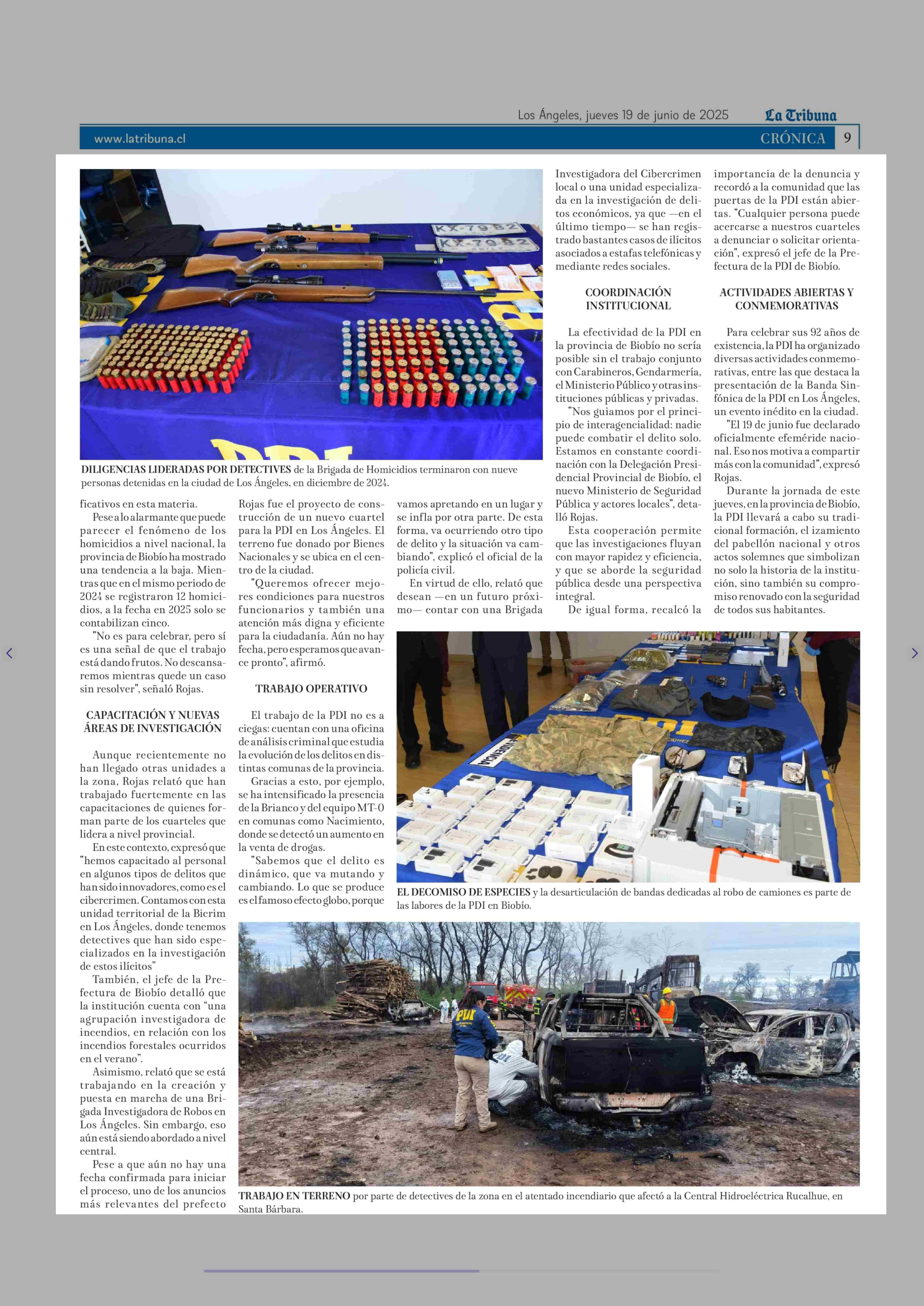 A 92 años de su fundación: PDI en Biobío refuerza su rol estratégico en la seguridad pública 19-06-2025 La Tribuna |