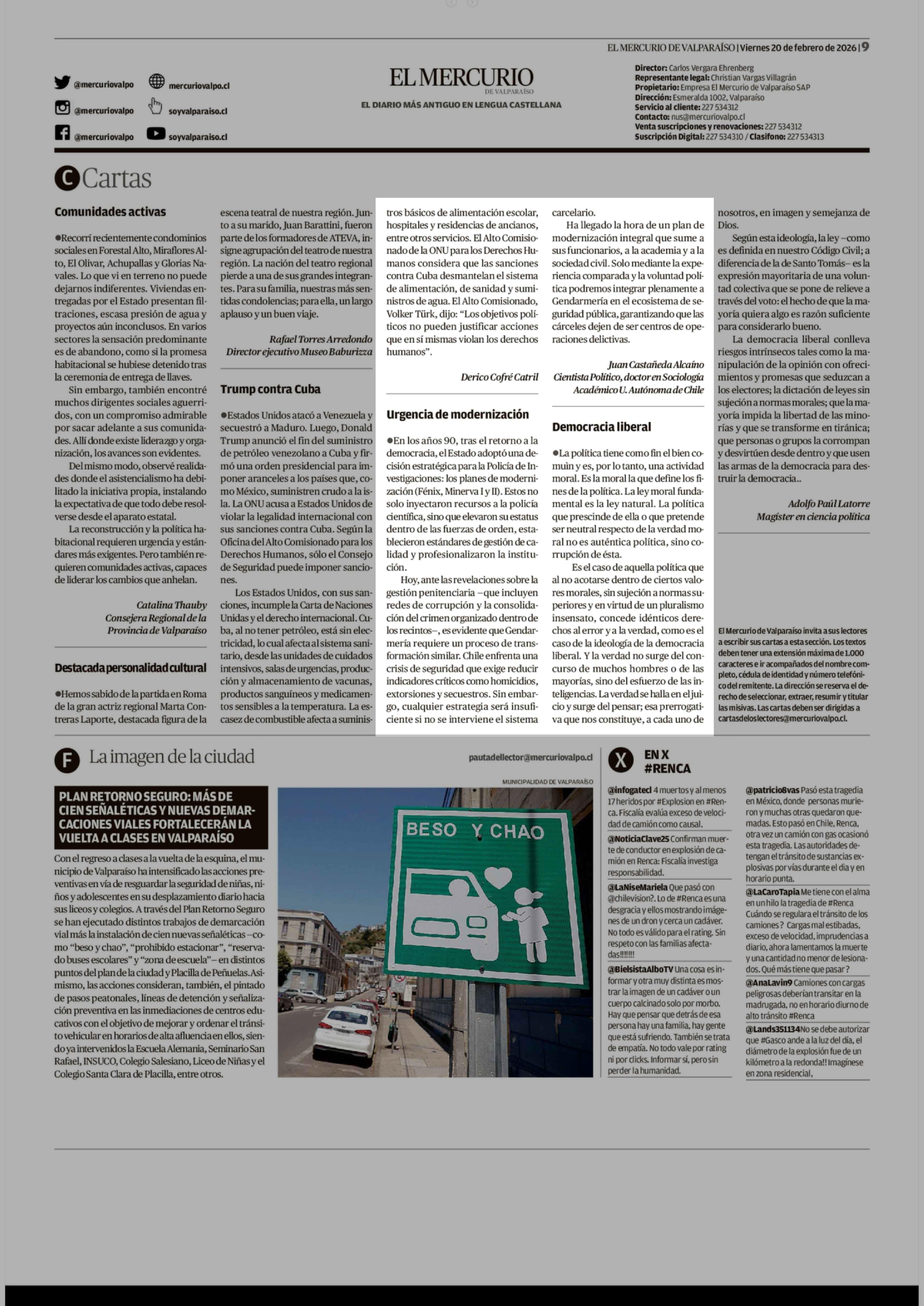 Cartas: Urgencia de modernización 20-02-2026 El Mercurio de Valparaíso |