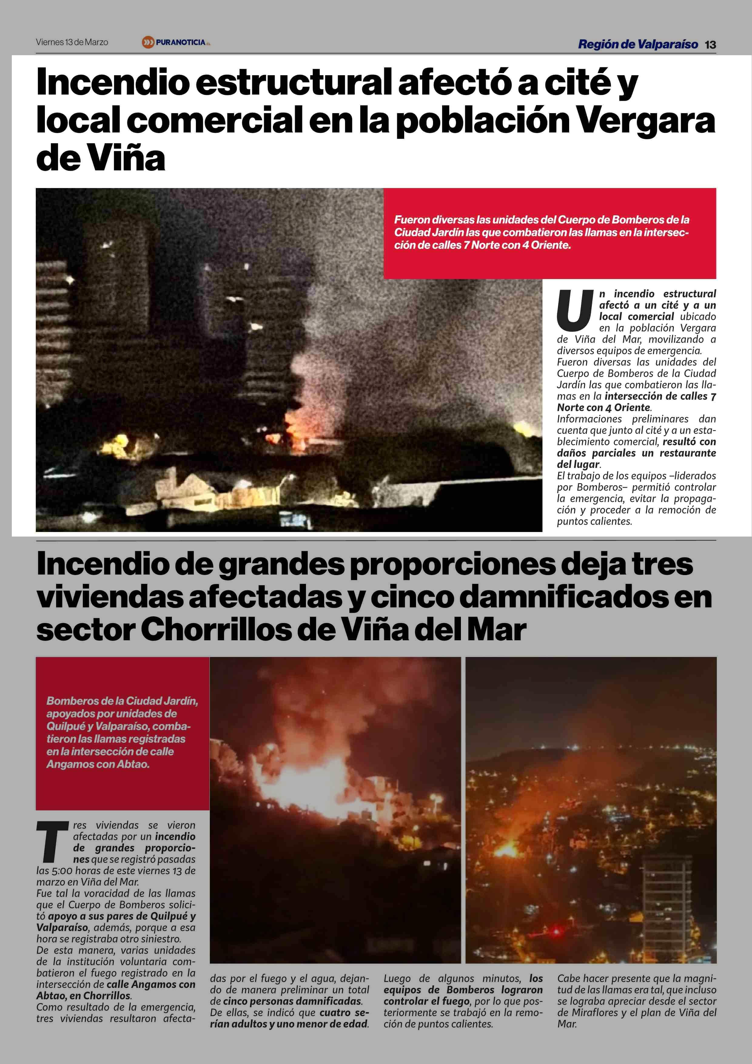 Título: Incendio estructural afectó a cité y local comercial en la población Vergara de Viña